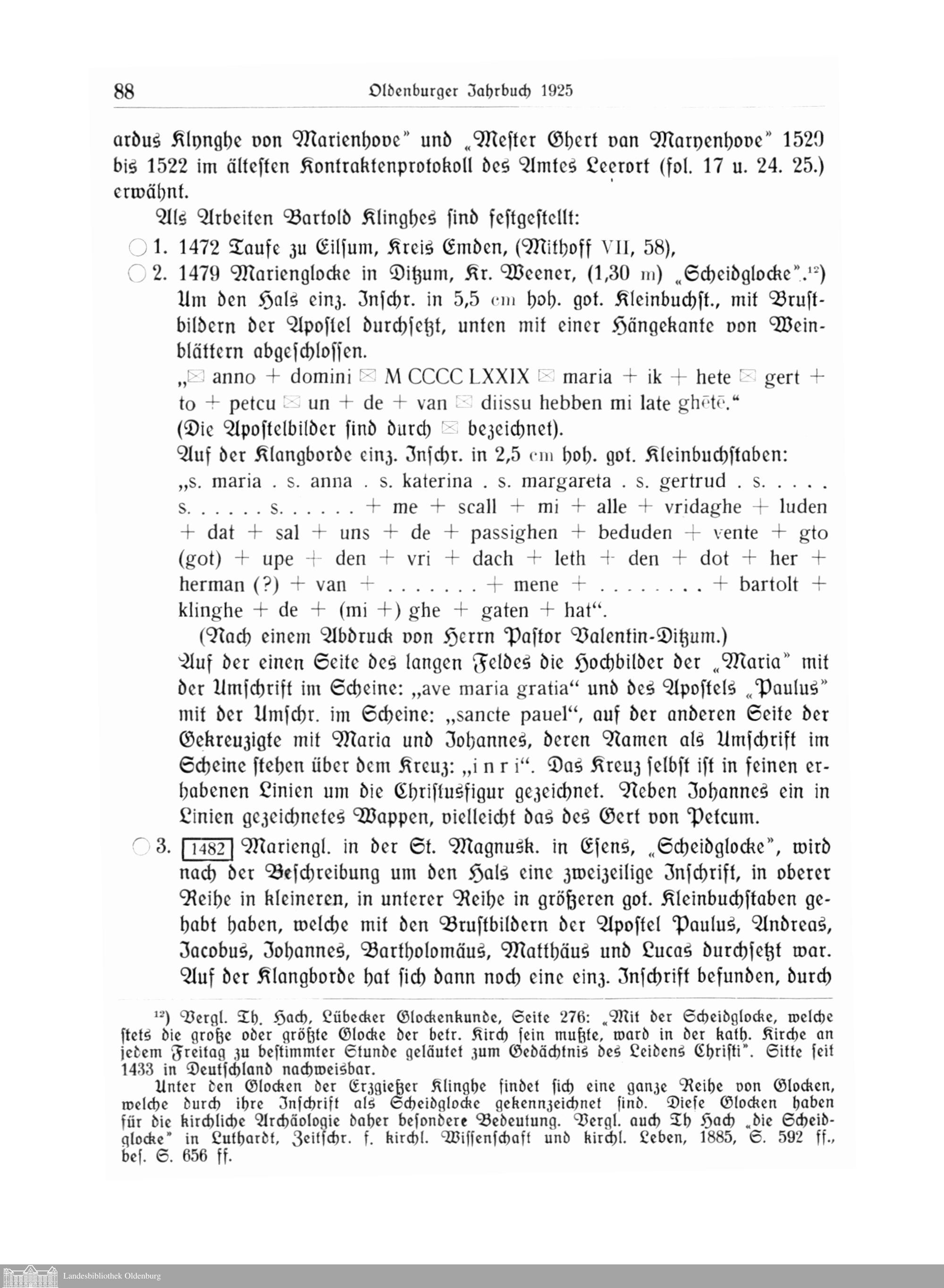 Glockenkunde Oldenburgs. Von A. Rauchheld, Ministerialrat, Oldenburg.