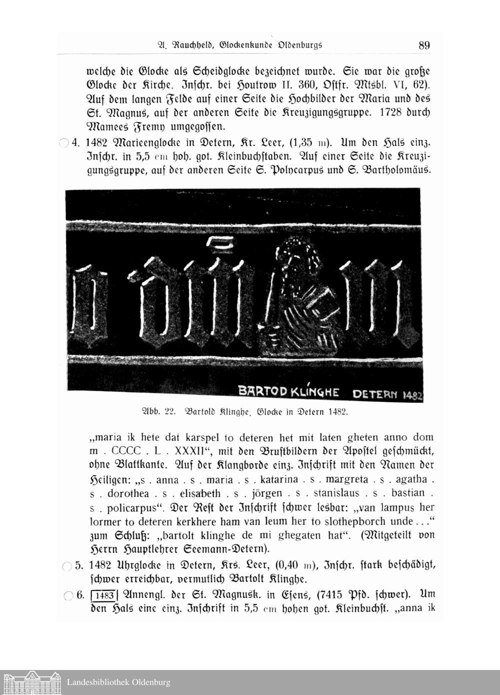 Glockenkunde Oldenburgs. Von A. Rauchheld, Ministerialrat, Oldenburg.