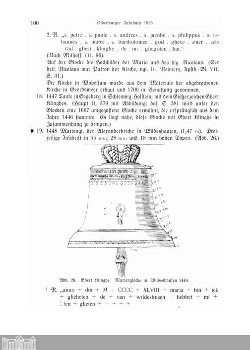 Glockenkunde Oldenburgs. Von A. Rauchheld, Ministerialrat, Oldenburg.