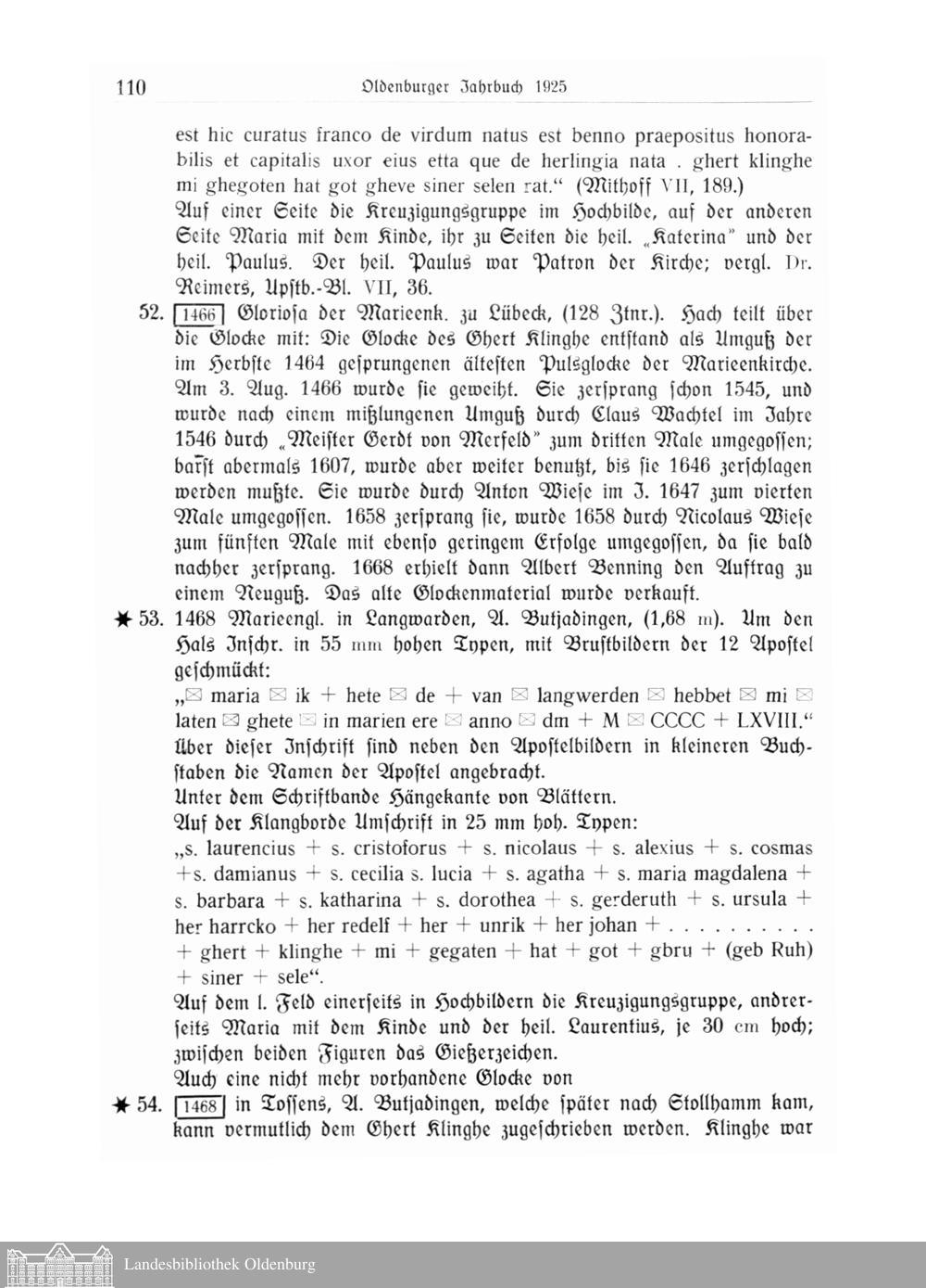 Glockenkunde Oldenburgs. Von A. Rauchheld, Ministerialrat, Oldenburg.
