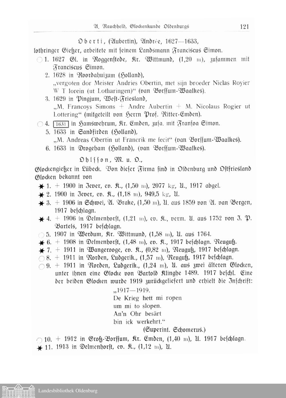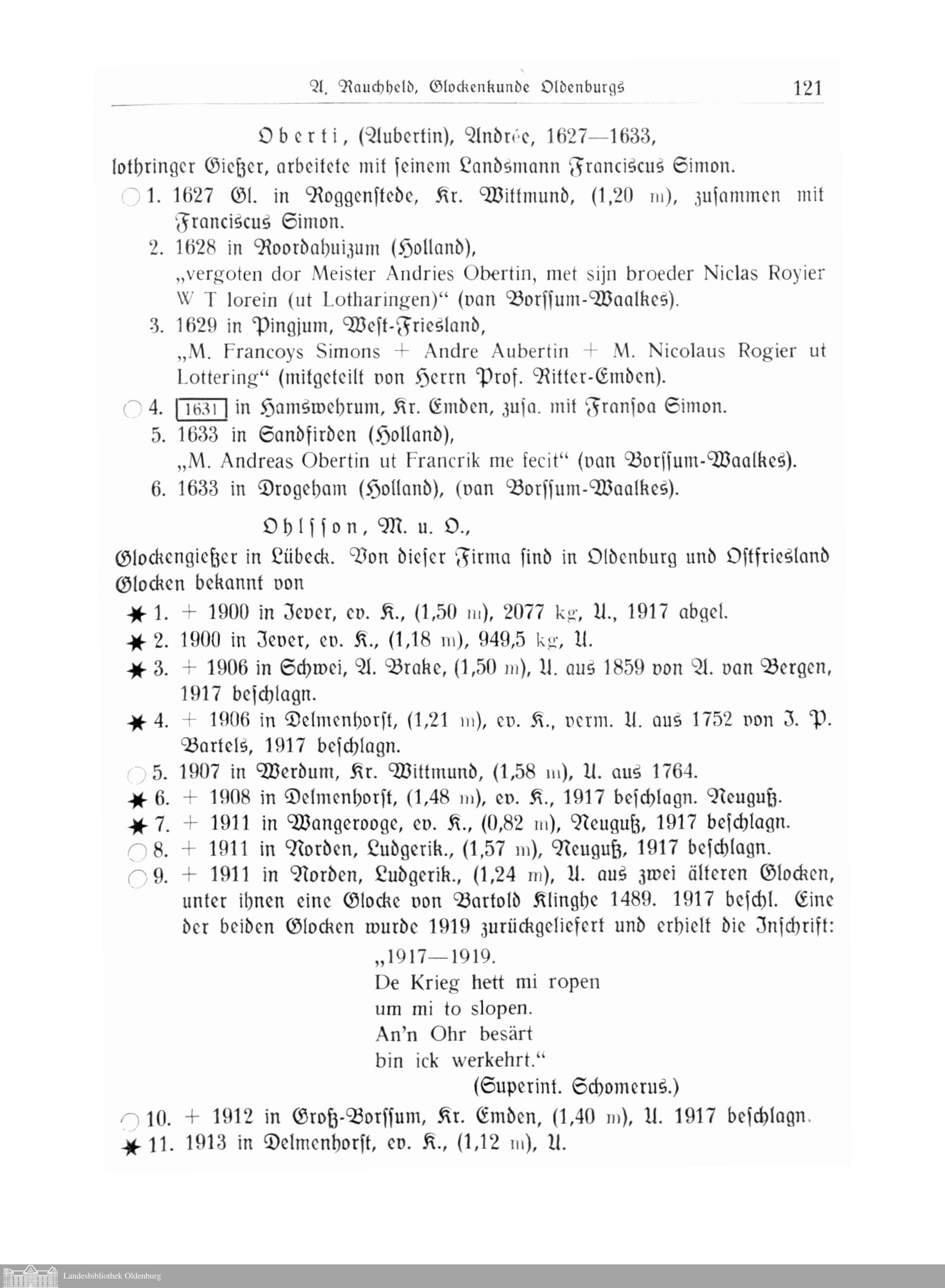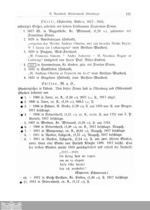 Glockenkunde Oldenburgs. Von A. Rauchheld, Ministerialrat, Oldenburg.