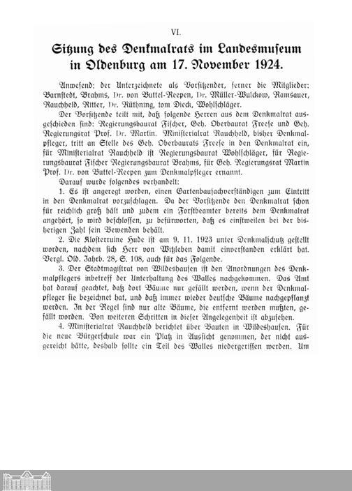 VI. Sitzung des Denkmalrats im Landesmuseum in Oldenburg am 17. November 1924.