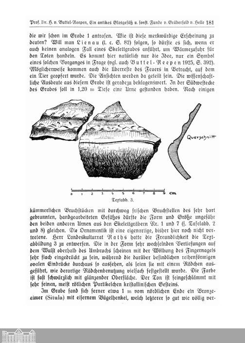 VIII. Ein antikes Glasgefäß und sonstige Funde vom Gräberfeld von Helle, Gemeinde Zwischenahn, Amt Westerstede. Von Prof. Dr. H. v. Buttel-Reepen.