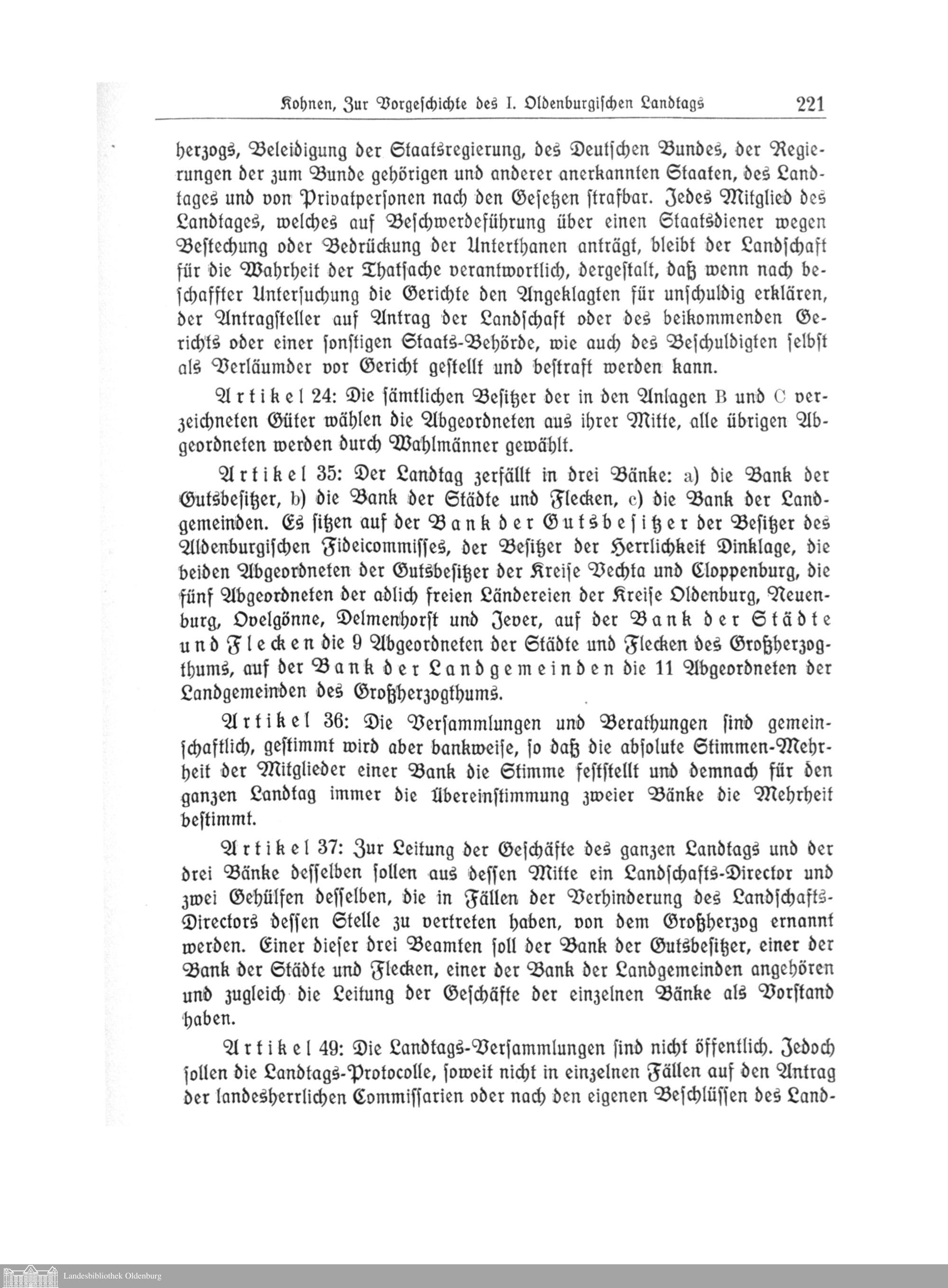 V. Zur Vorgeschichte des I. Oldenburgischen Landtags. Von Dr. Kohnen, Vechta.