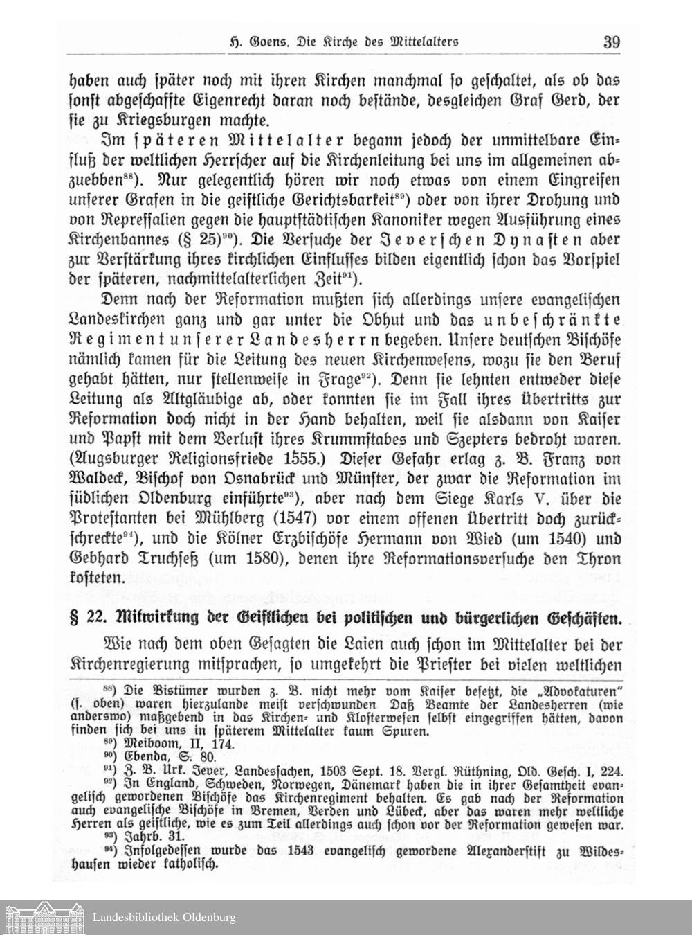 I. Die Kirche des Mittelalters in dem evangelischen Gebiete des Herzogtums Oldenburg von H. Goens, Geh. Archivrat.