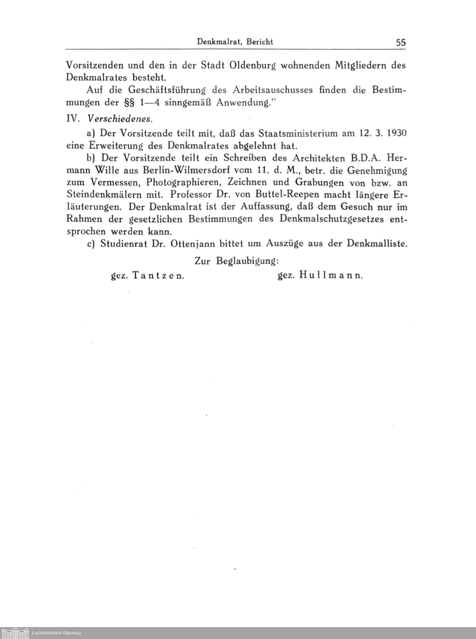 VI. Sitzung des Denkmalrates am 22. Juni 1932 im Sitzungsziummer (Nr. 160) im Gebäude des Staatsministeriums. Ministerialrat Tantzen, Vorsitzender