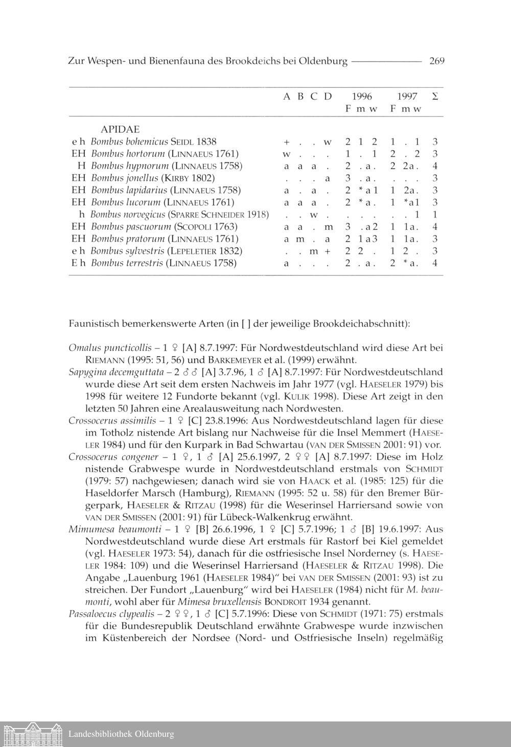 Volker Haeseler: Zur Wespen- und Bienenfauna des Brookdeichs bei Oldenburg i. O....