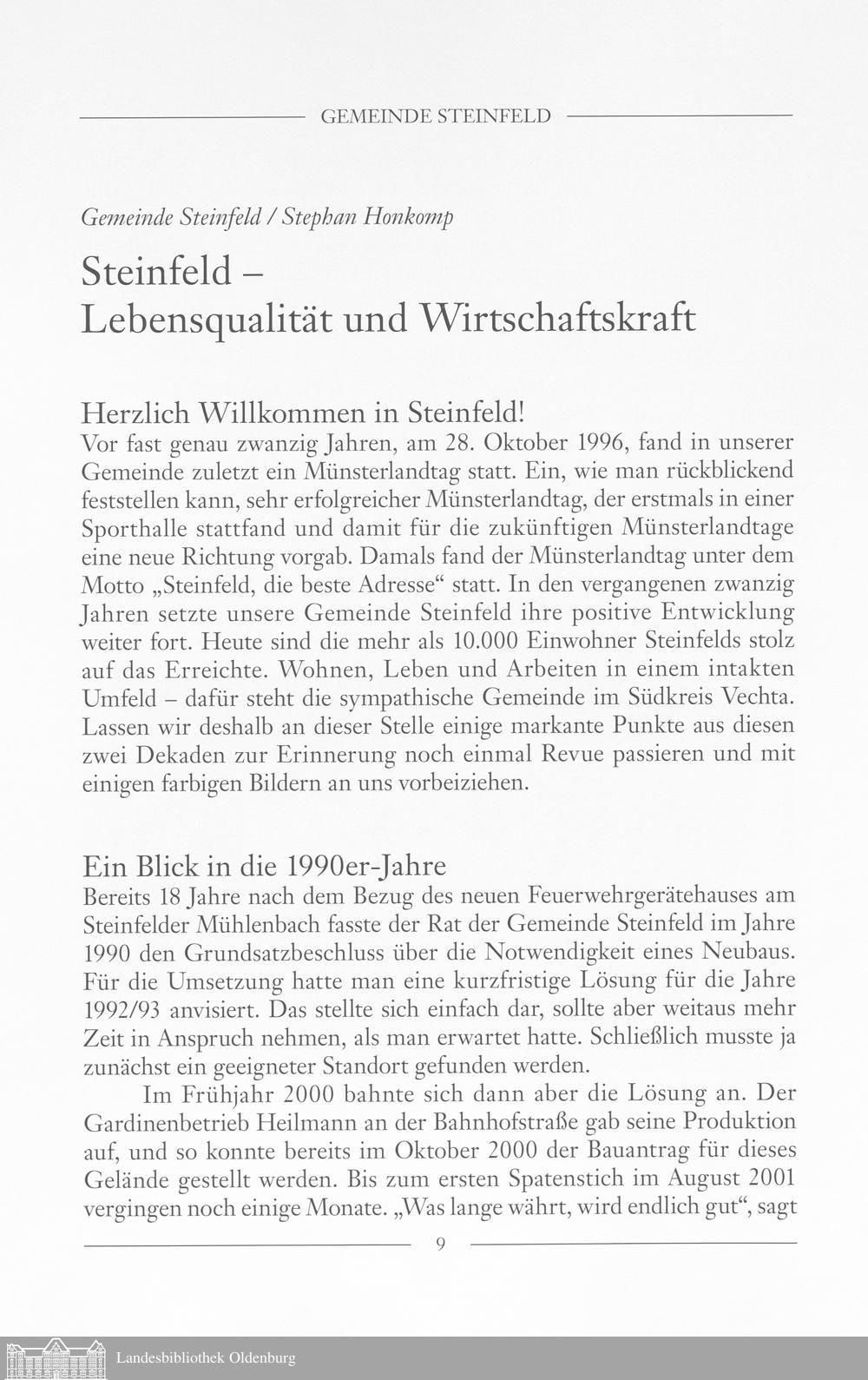 Gemeinde Steinfeld/ Stephan Honkomp: Steinfeld - Lebensqualität und Wirtschaftsk...