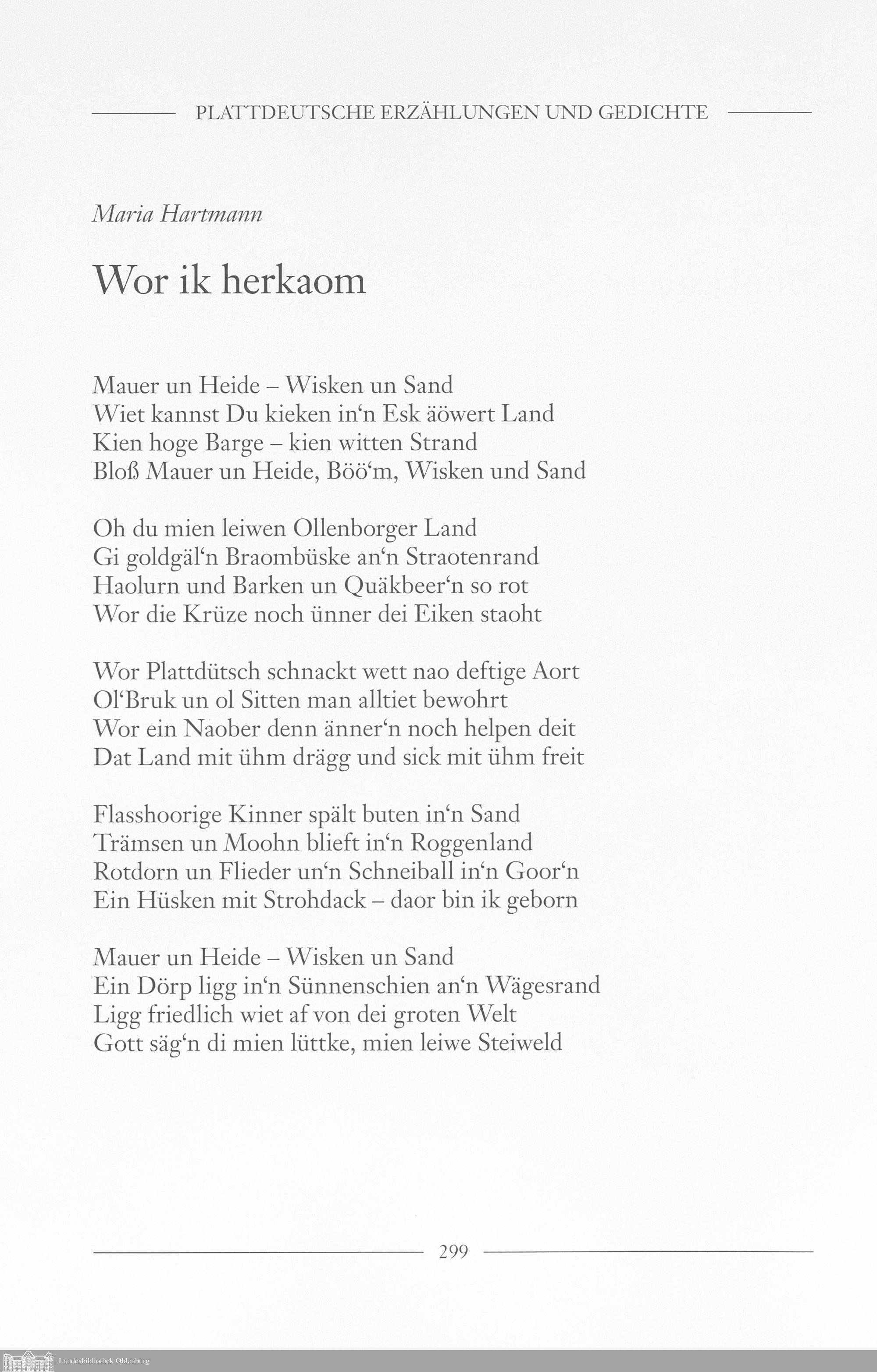 Maria Hartmann: Wor ik herkaom