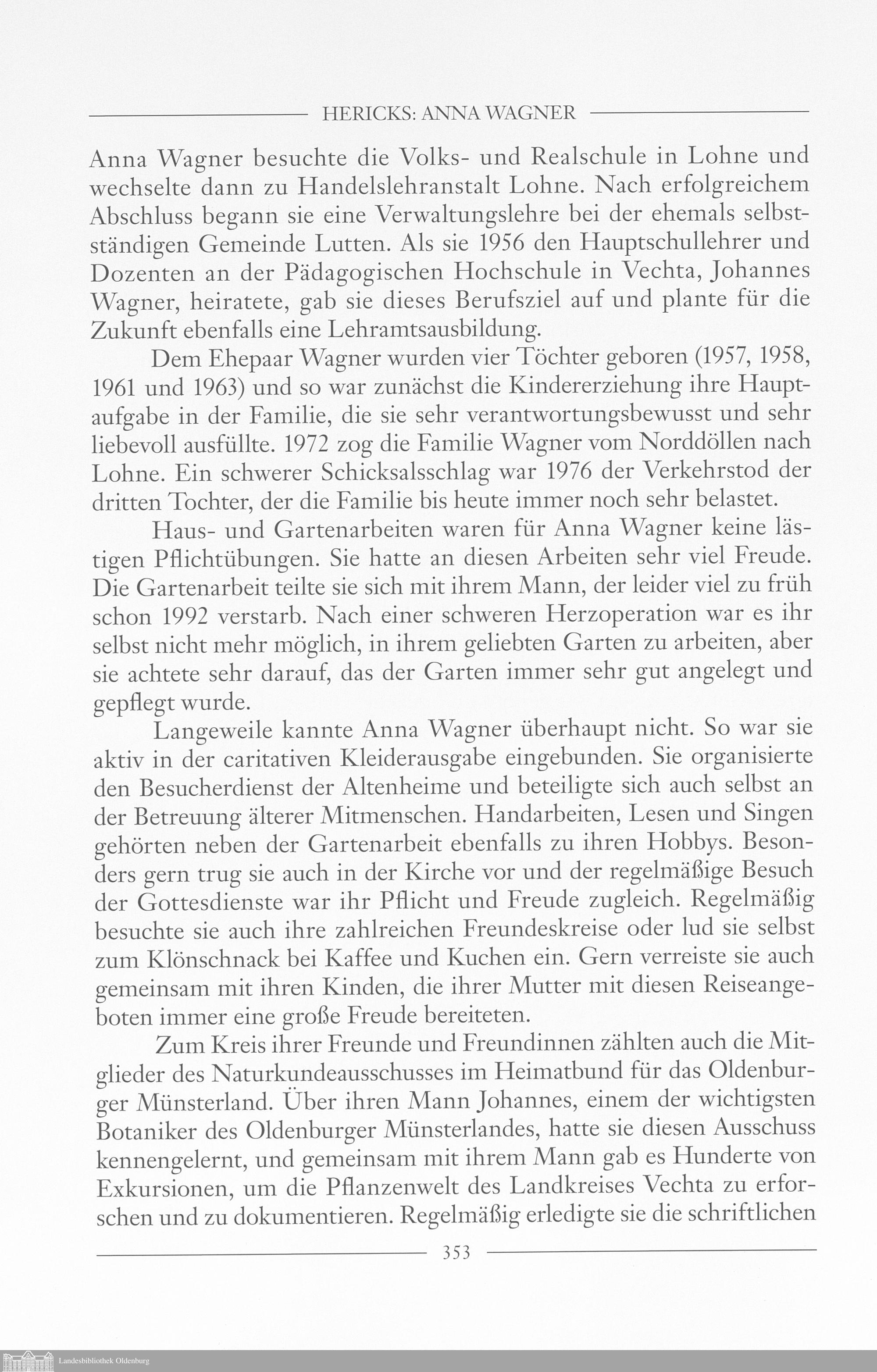 Franz Hericks: Anna Wagner (1931 - 2016)