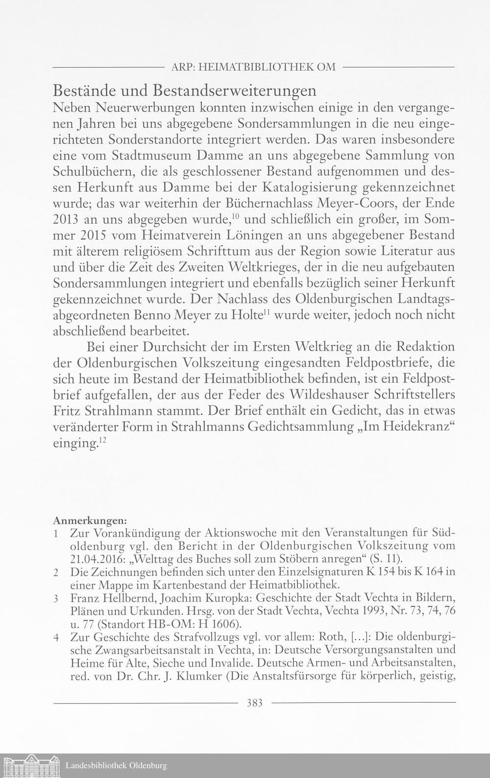 Ingrid Arp: Heimatbibliothek für das Oldenburger Münsterland 2015/ 2016