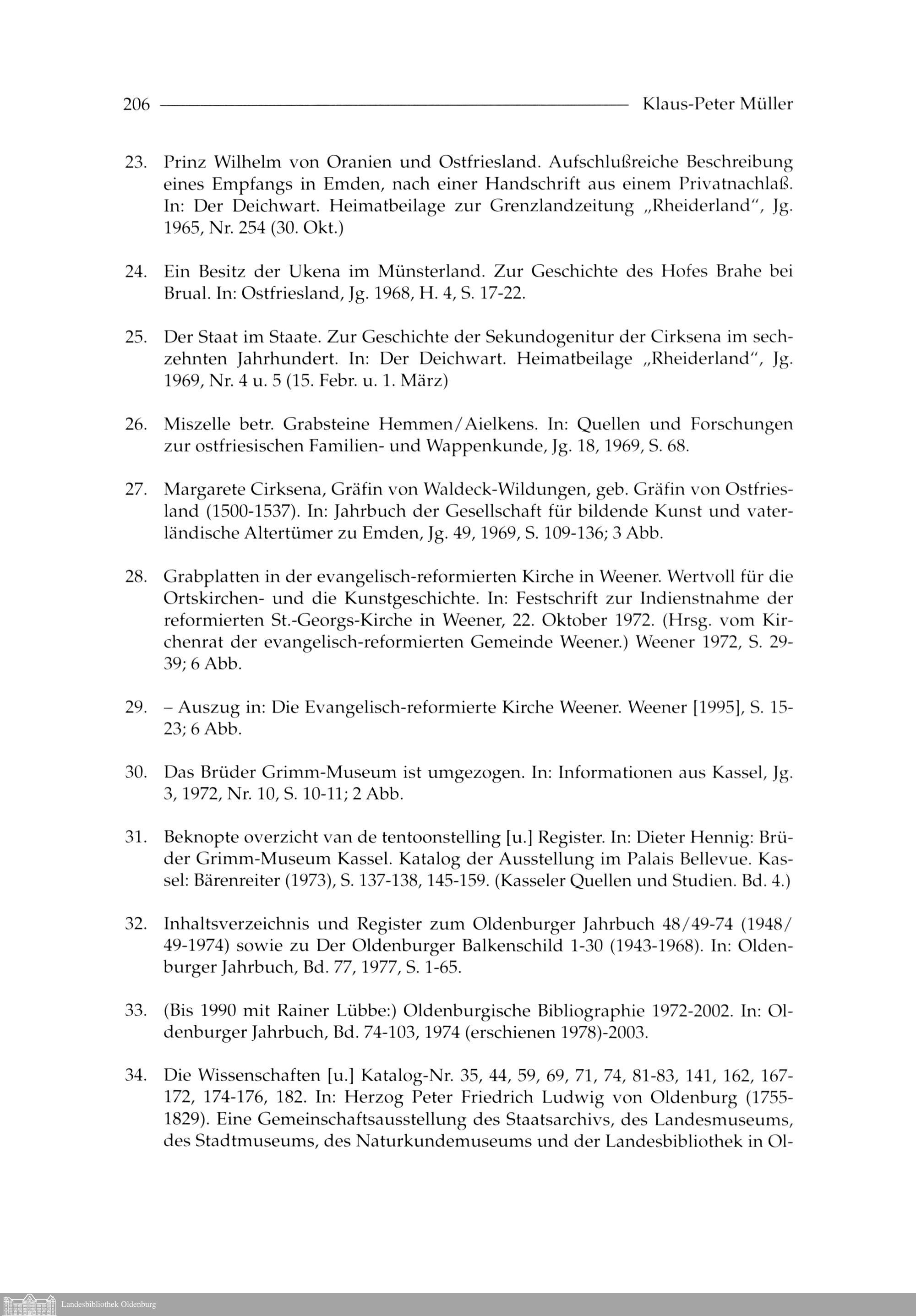 Klaus-Peter Müller: Verzeichnis der Veröffentlichungen von Egbert Koolman. Zum 65....