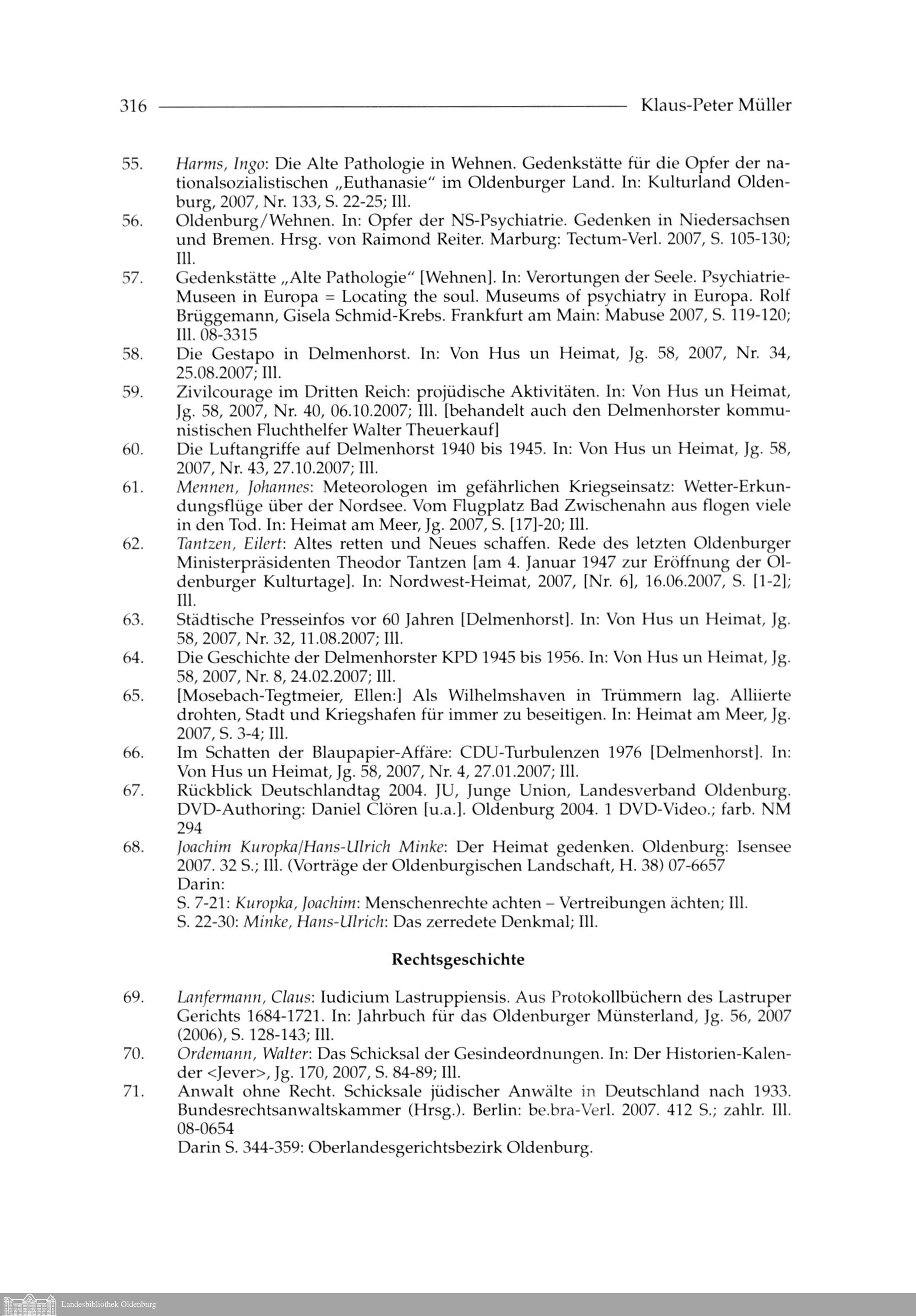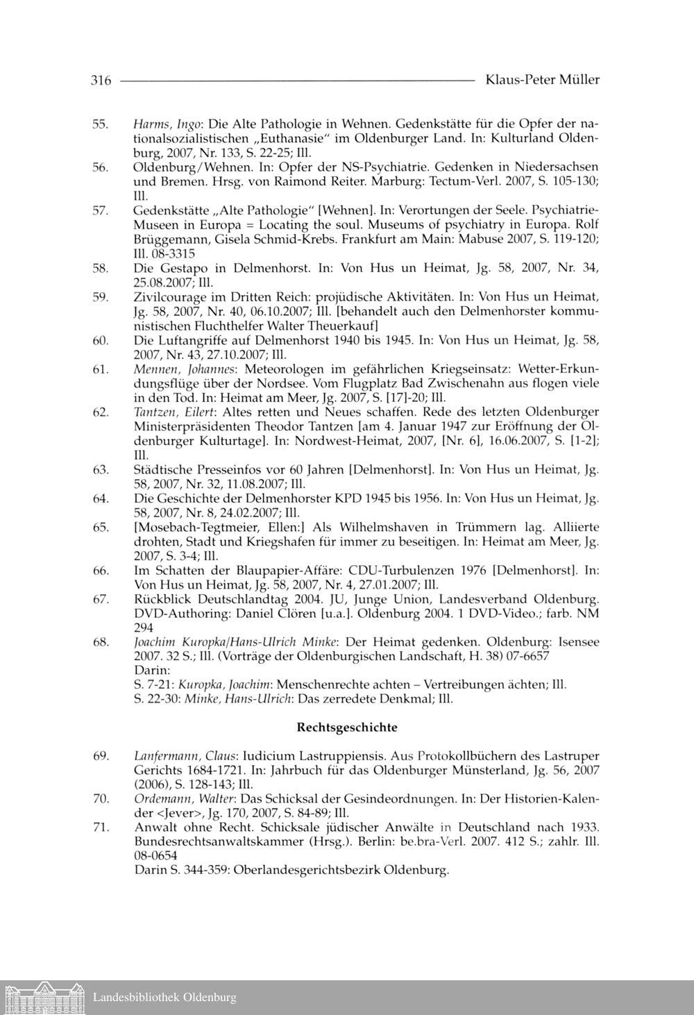Klaus-Peter Müller: Oldenburgische Bibliographie 2007. Mit Nachträgen aus den vergangenen...