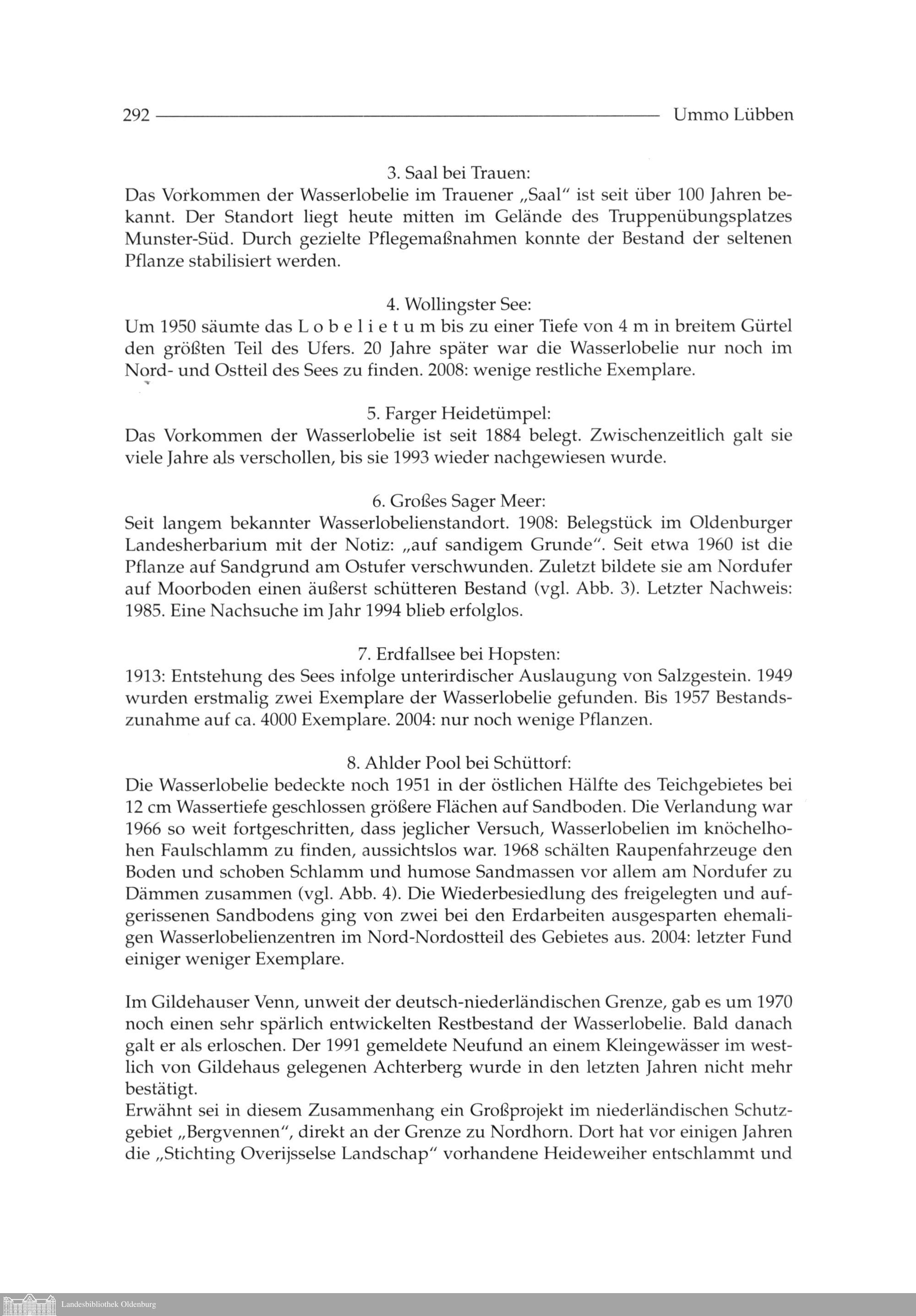 Ummo Lübben: Zum Vorkommen der Wasserlobelie (Lobelia dortmanna L.) in Nordwestd...
