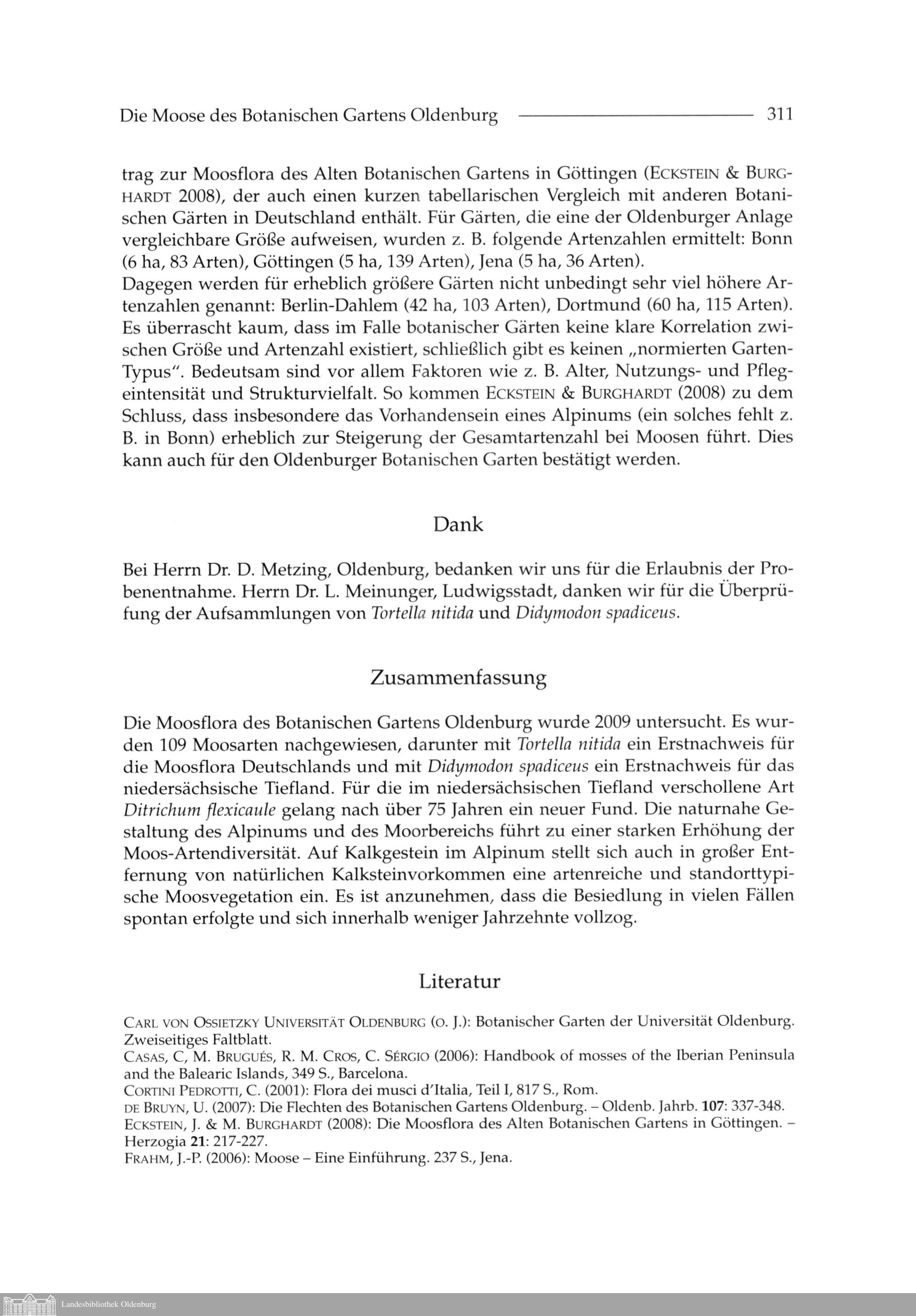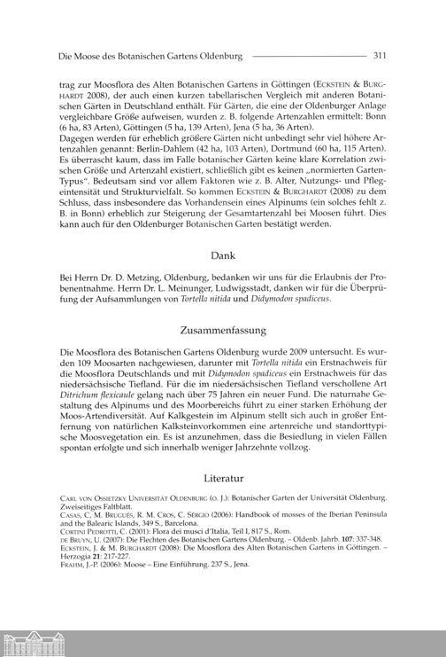 Uwe de Bruyn / Thomas Homm: Die Moose des Botanischen Gartens Oldenburg