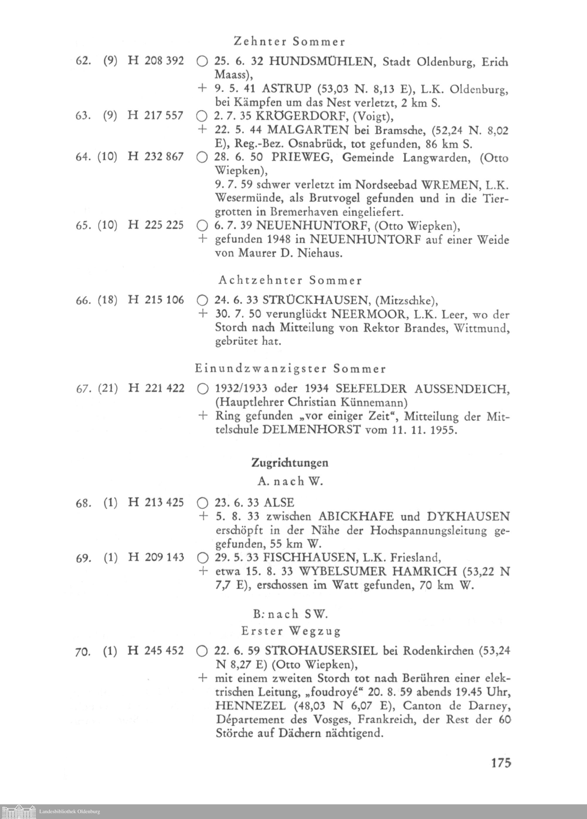 Richard Tantzen: Der Weiße Storch Cionia cionia (L) im Lande Oldenburg (Zusammenfassung...