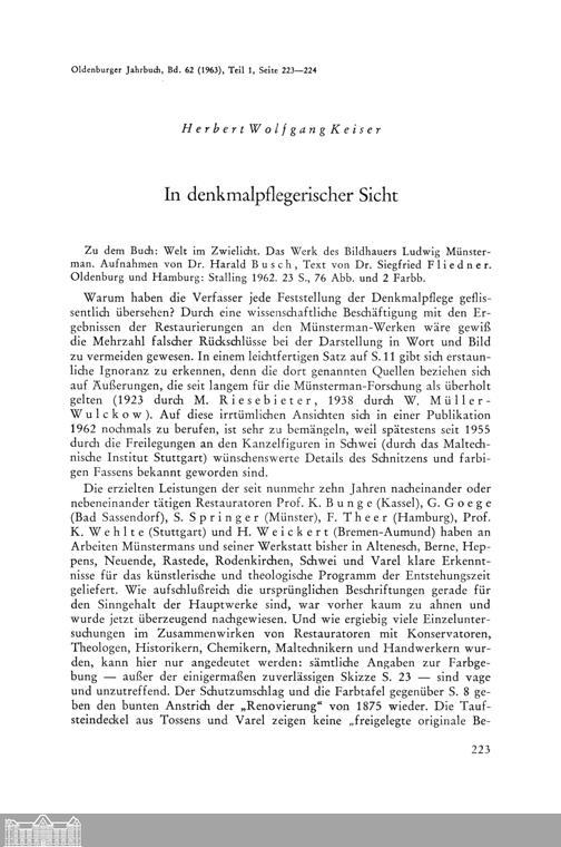 Herbert Wolfgang Keiser: In denkmalpflegerischer Sicht