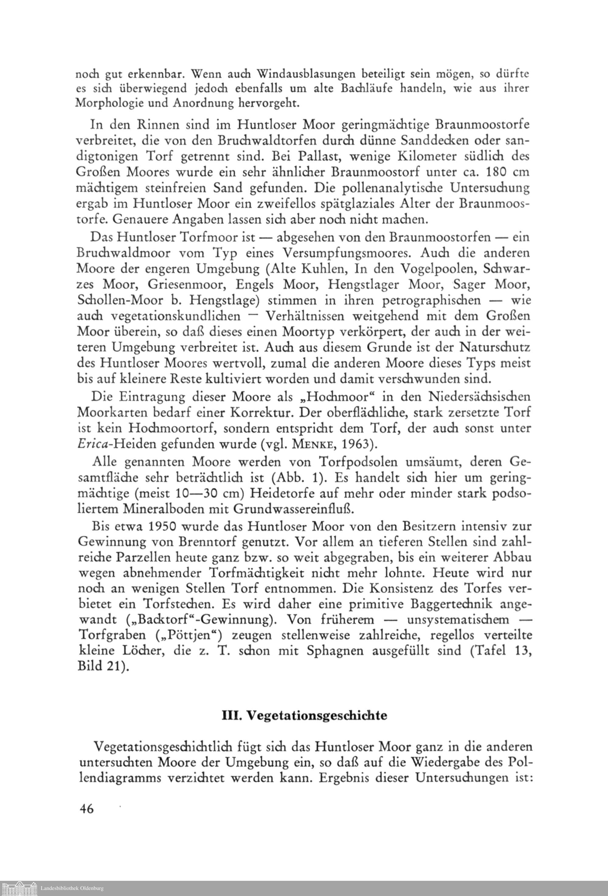Burchard Menke: Das Huntloser Torfmoor. Vegetationskundliche Studie über ein oldenburgisches...