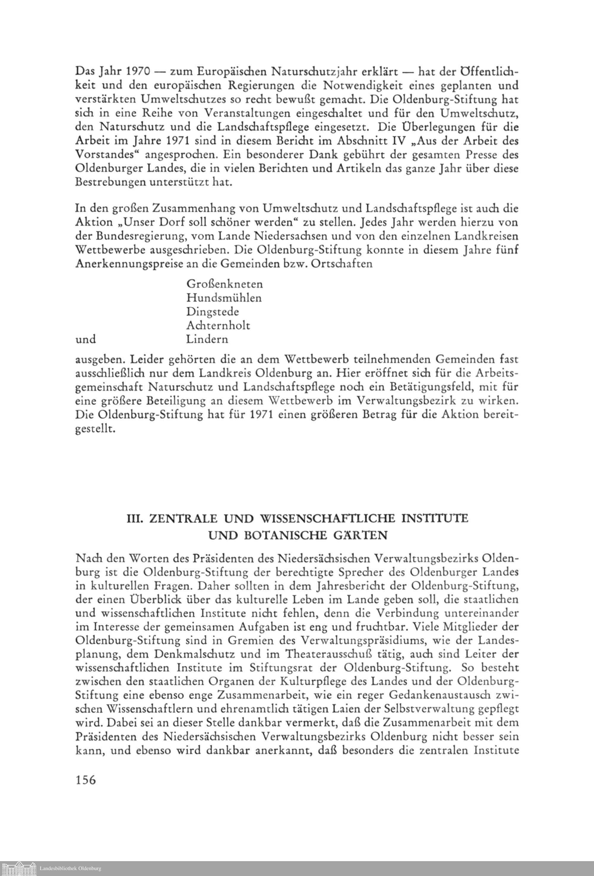 Bericht der Oldenburg-Stiftung e. V. für das Jahr 1970