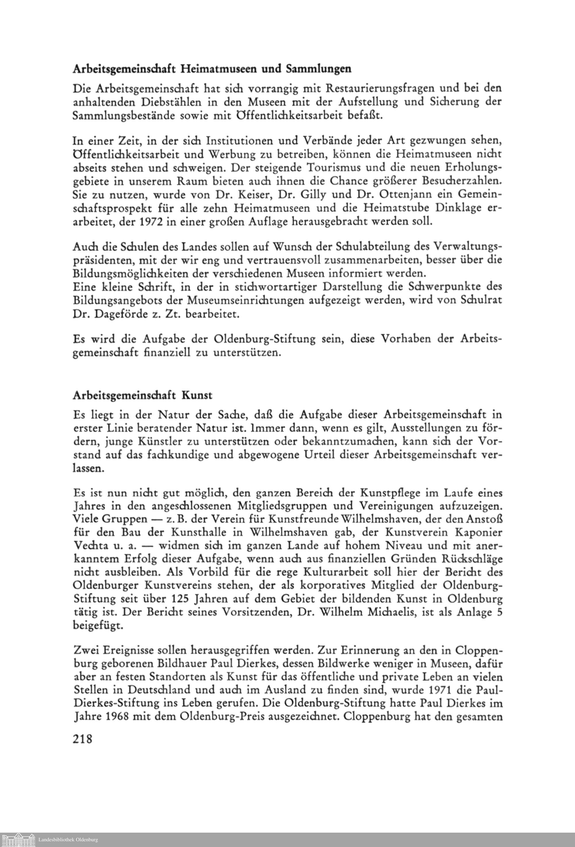 Bericht der Oldenburg-Stiftung e. V. für das Jahr 1971