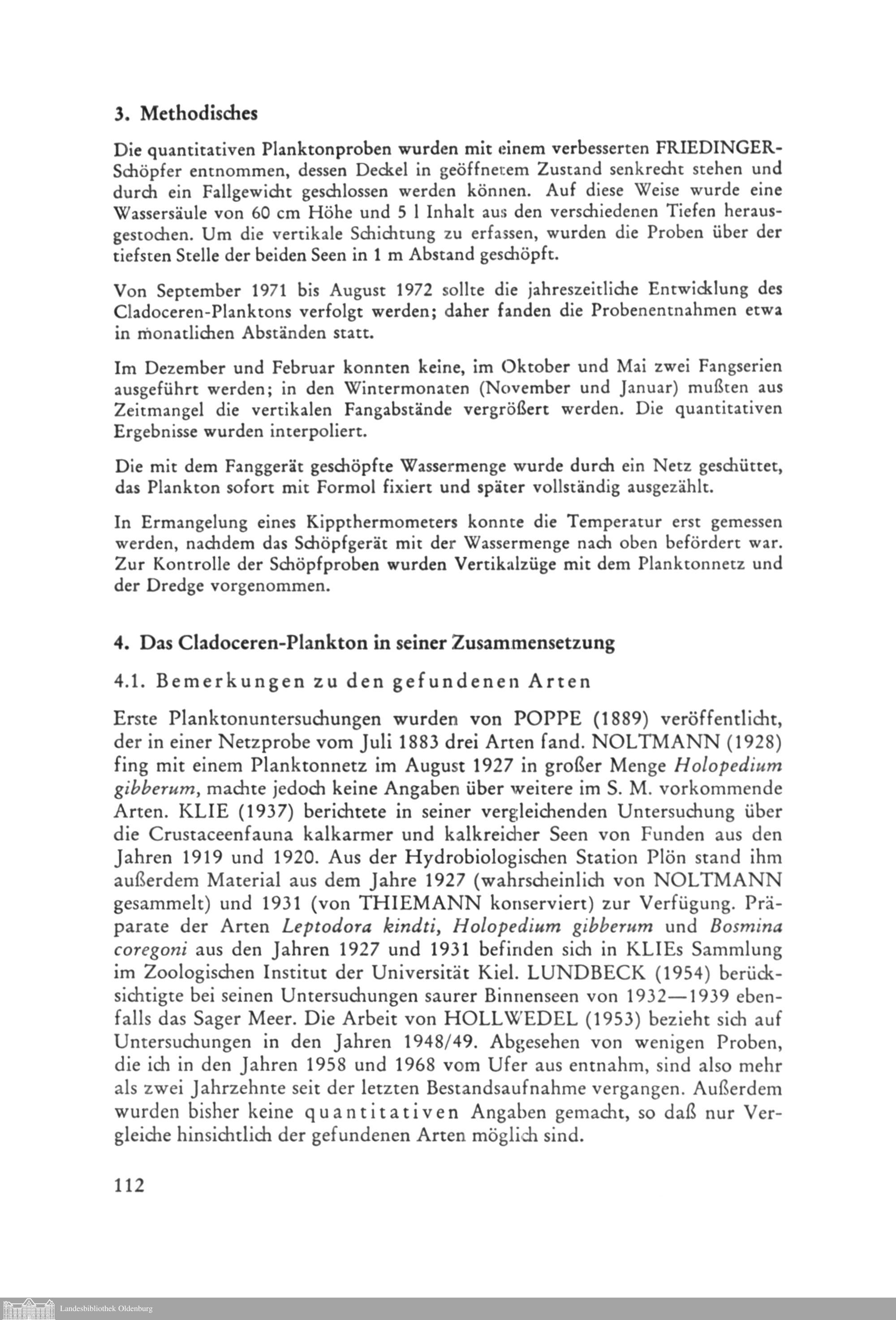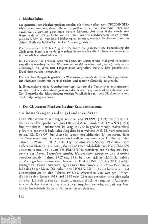 Werner Hollwedel (Varel): Zur Cladoceren-Fauna des Sager Meeres: I. Quantitative...