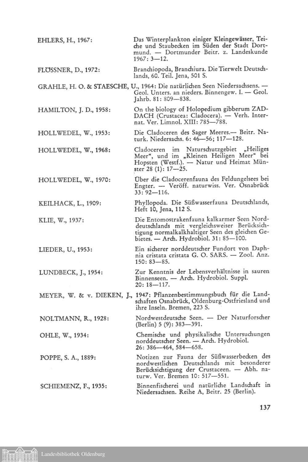 Werner Hollwedel (Varel): Zur Cladoceren-Fauna des Sager Meeres: I. Quantitative...