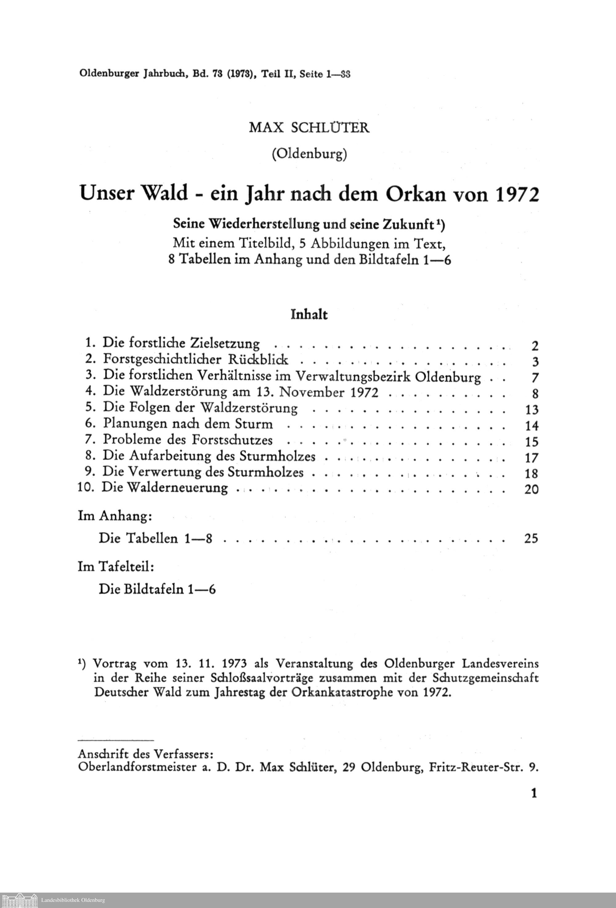 Max Schlüter (Oldenburg): Unser Wald - ein Jahr nach dem Orkan von 1972. Seine Wiederherstellung...