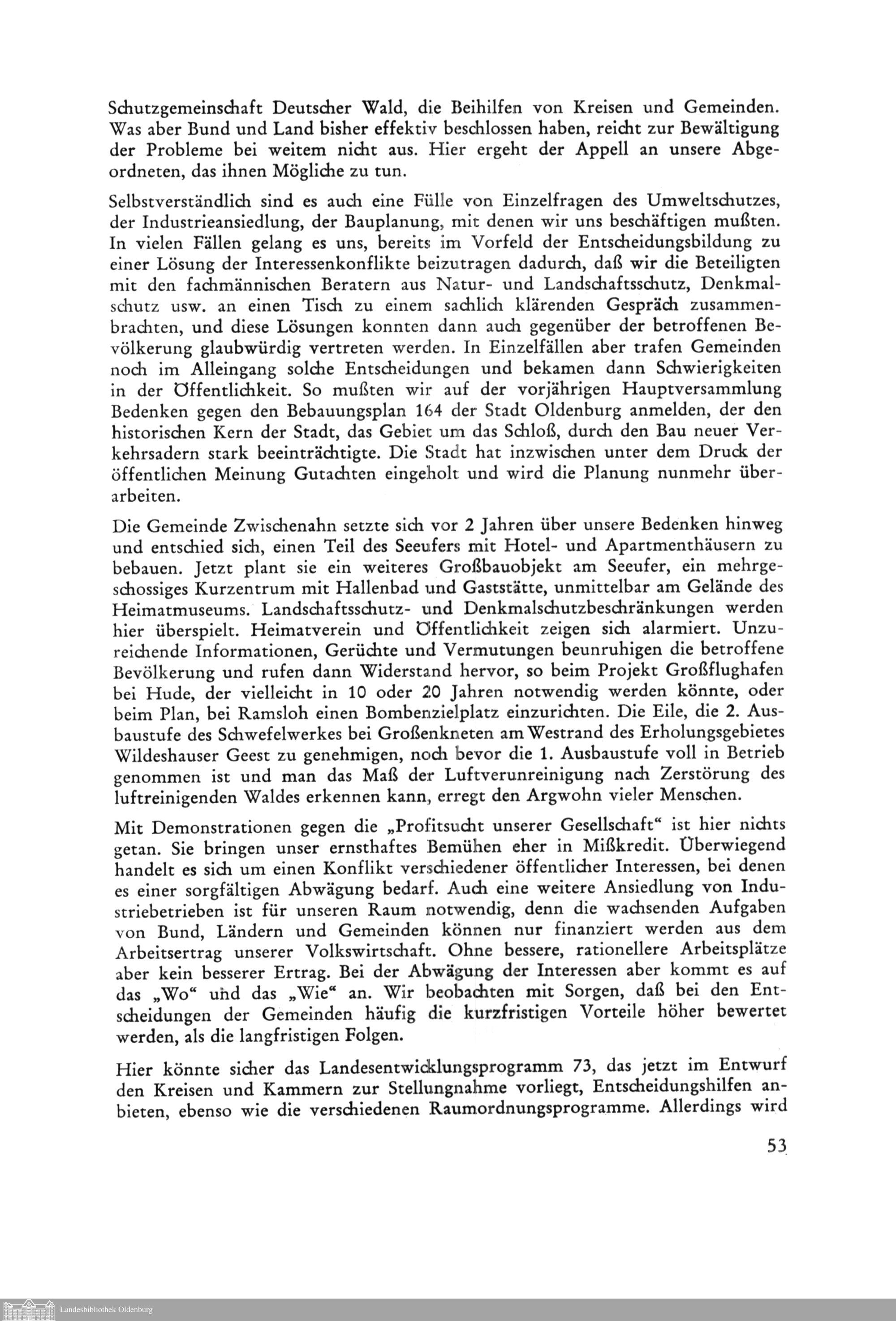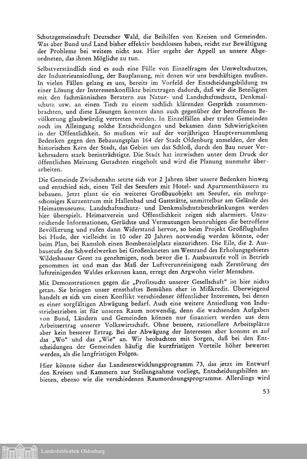 Bericht der Oldenburg-Stiftung e. V. für das Jahr 1973