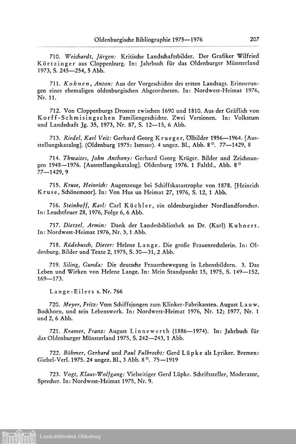Egbert Koolman und Rainer Lübbe: Oldenburgische Bibliographie 1975 - 1976 (mit Nachträgen...
