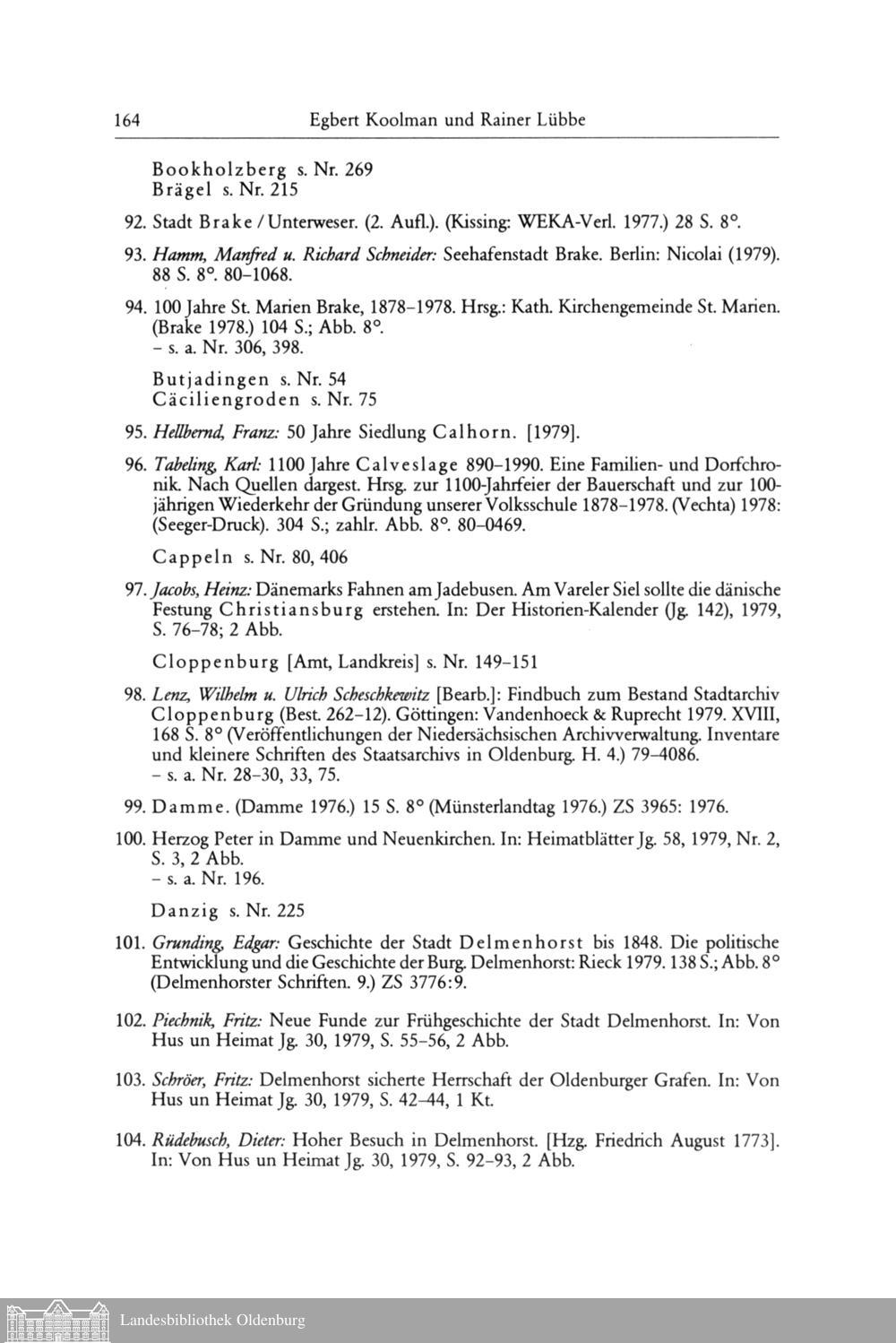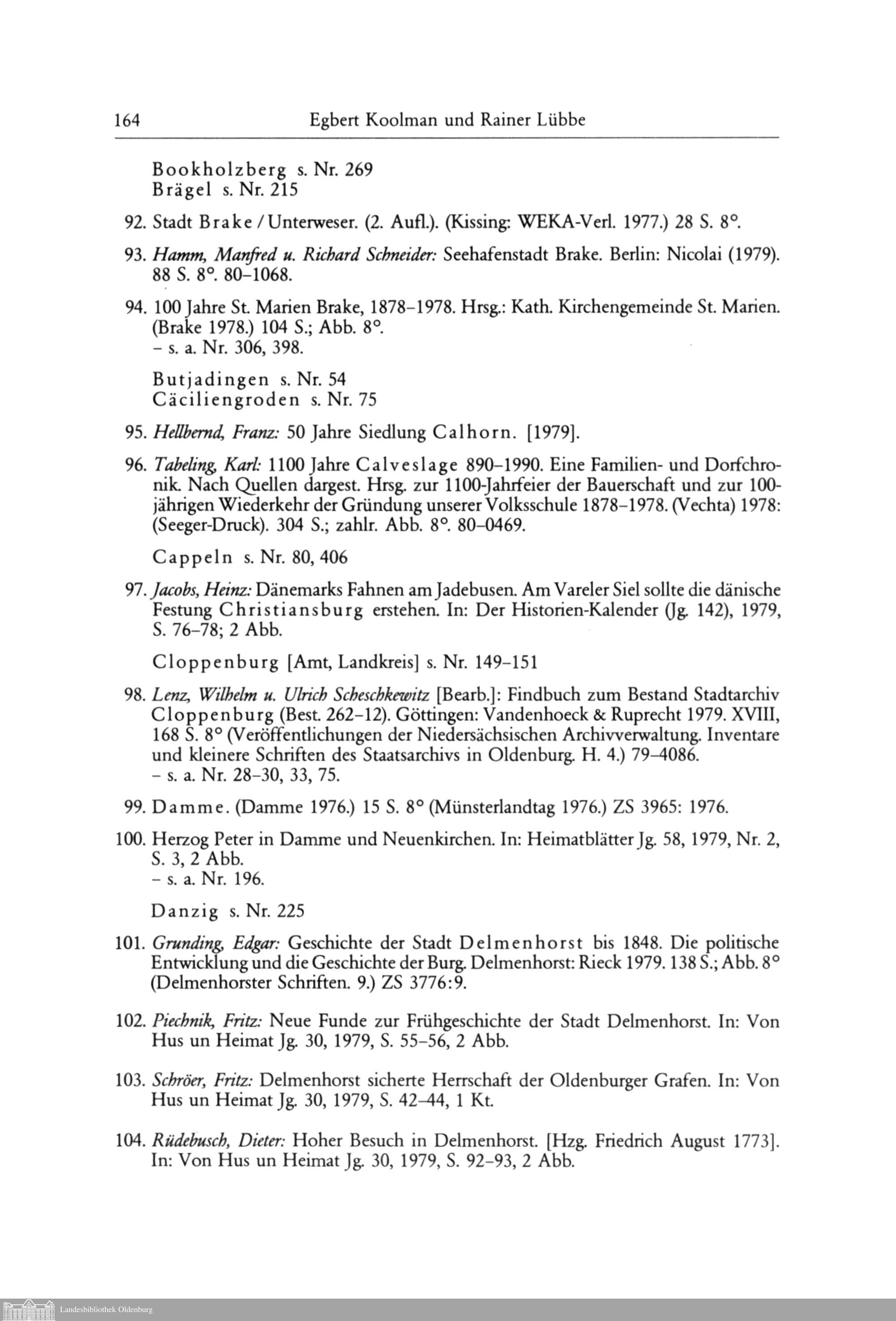 Egbert Koolman und Rainer Lübbe: Oldenburgische Bibliographie 1979. In der Landesbibliothek...