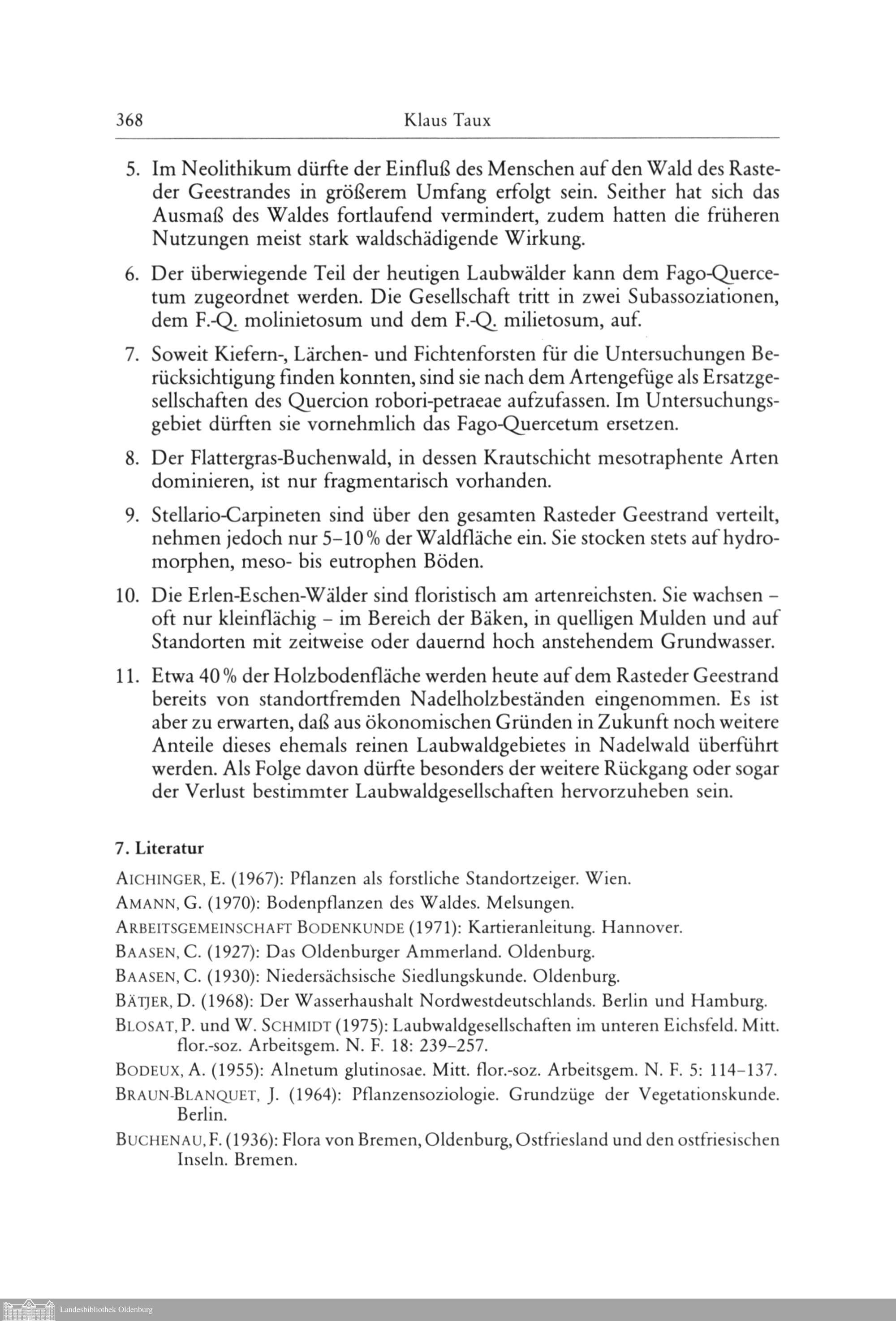 Klaus Taux (Oldenburg): Wald- und Forstgesellschaften des Rasteder Geestrandes. Mit...