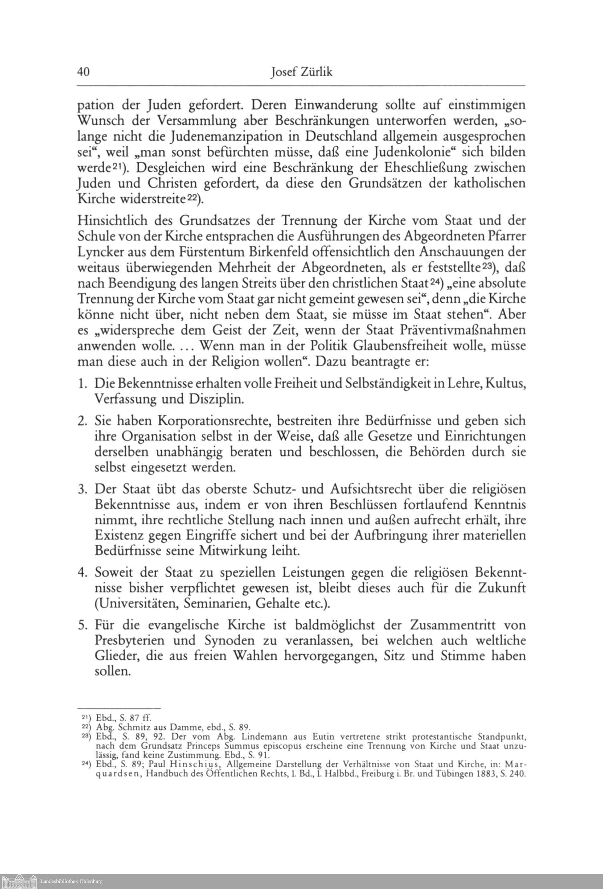 Josef Zürlik: Staat und Kirche im Lande Oldenburg von 1848 bis zur Gegenwart
