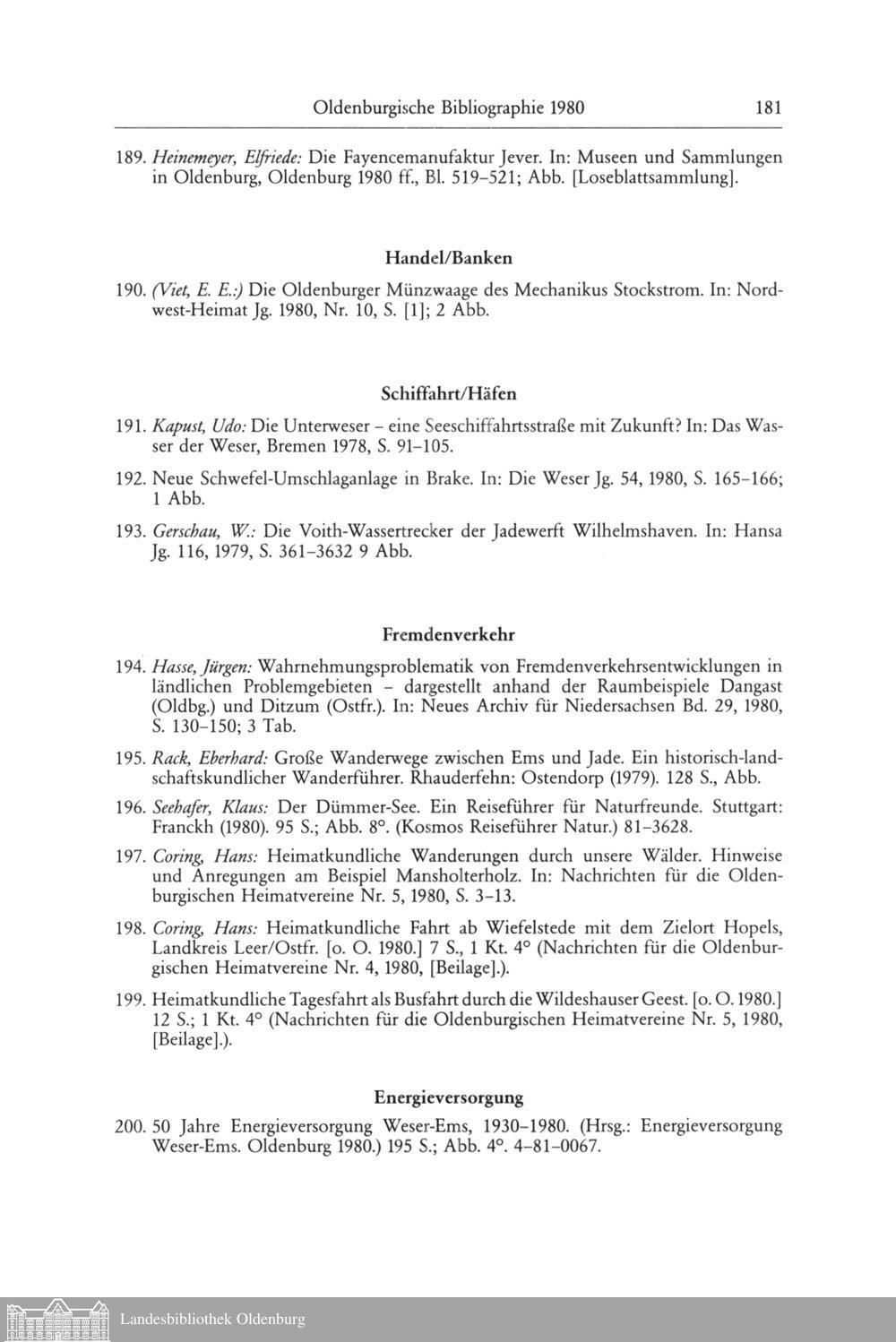 Egbert Koolman und Rainer Lübbe: Oldenburgische Bibliographie 1980. In der Landesbibliothek...