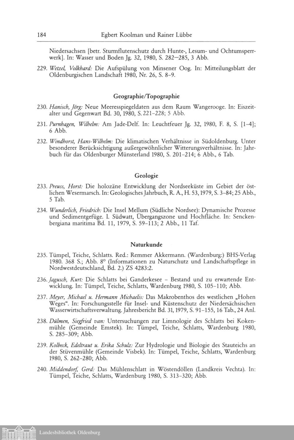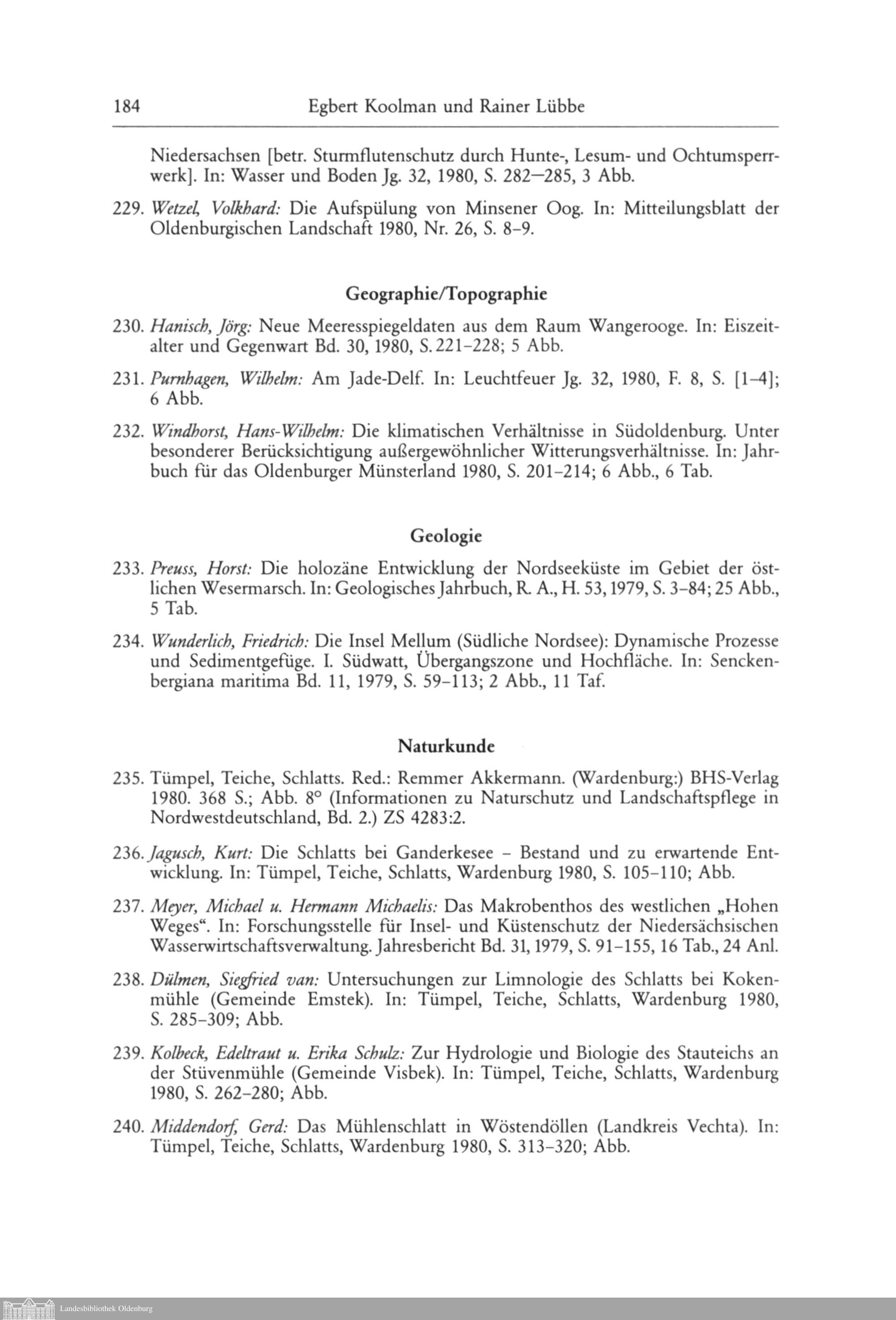 Egbert Koolman und Rainer Lübbe: Oldenburgische Bibliographie 1980. In der Landesbibliothek...