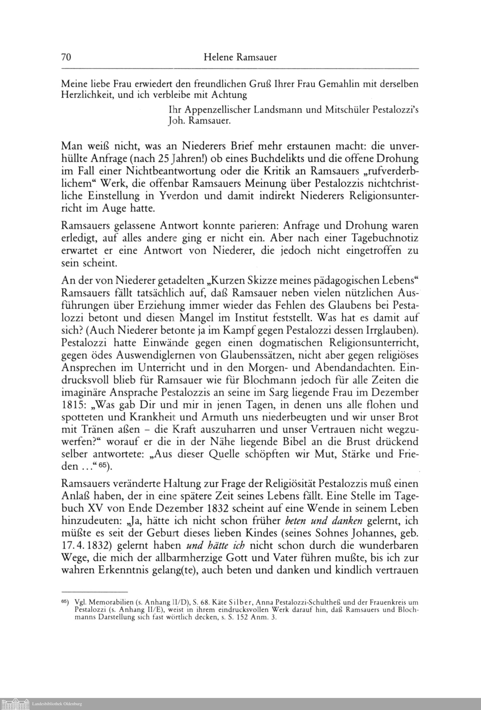 Helene Ramsauer: Johannes Ramsauer und Pestalozzi
