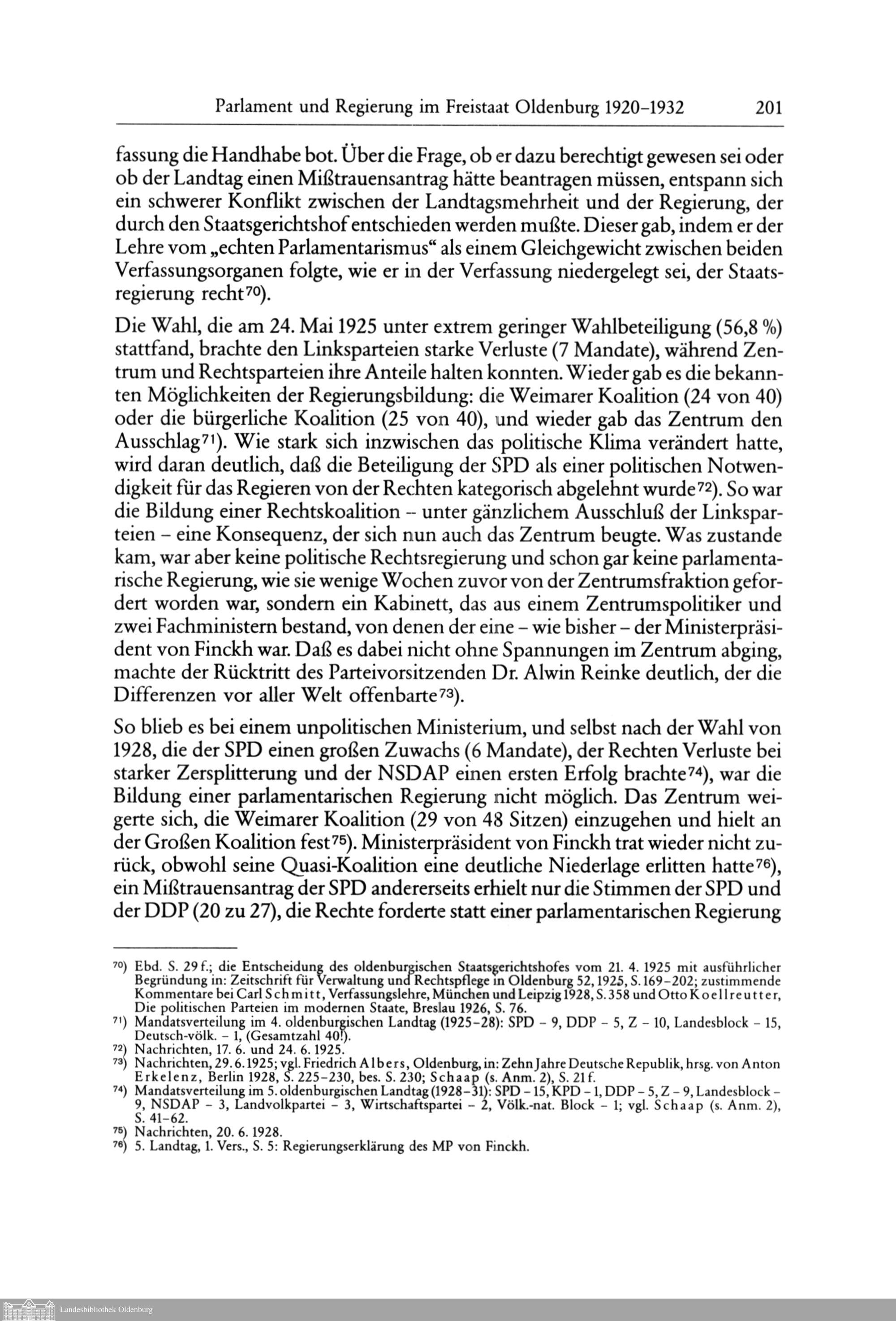 Wolfgang Günther: Parlament und Regierung im Freistaat Oldenburg 1920 - 1932