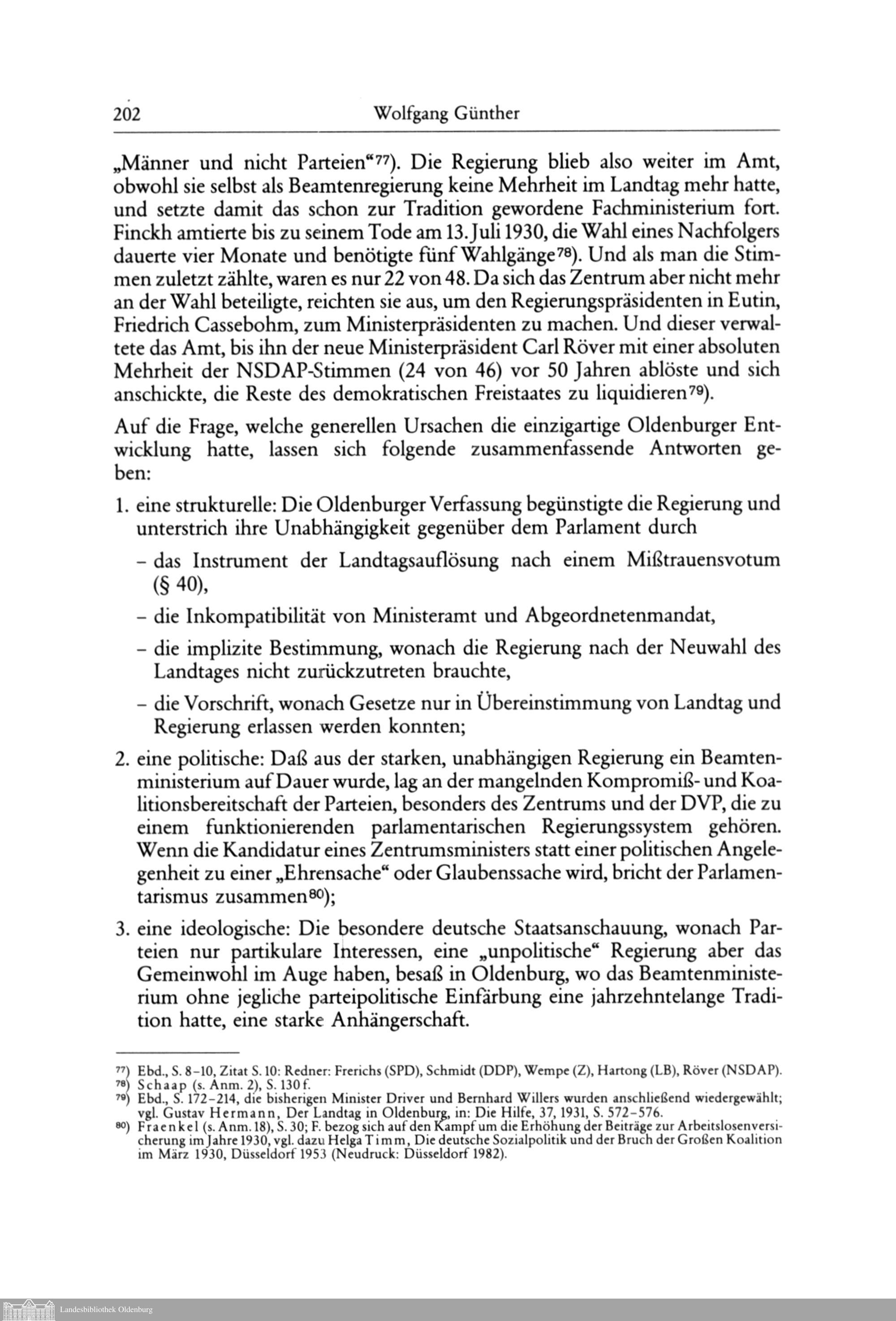 Wolfgang Günther: Parlament und Regierung im Freistaat Oldenburg 1920 - 1932
