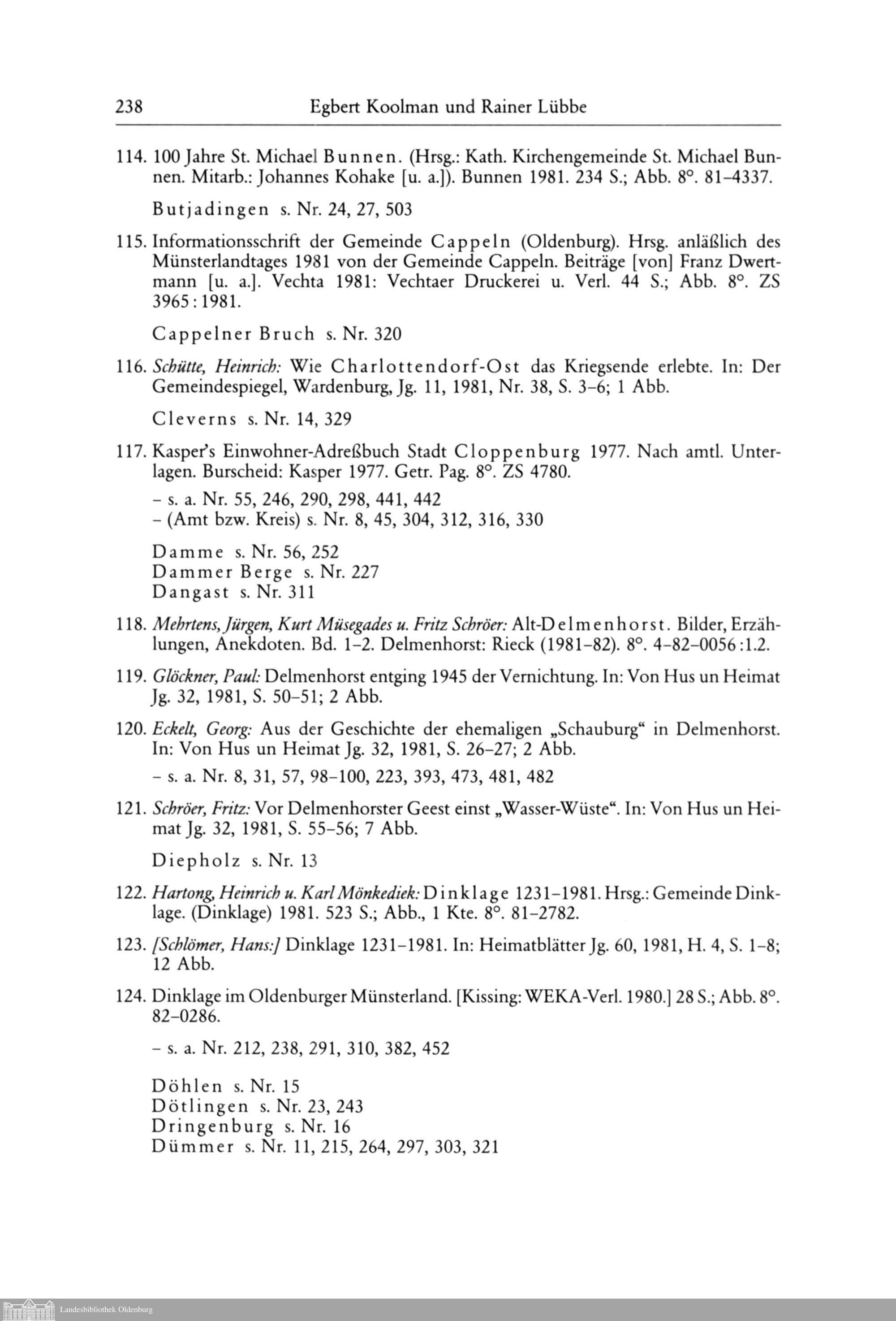 Egbert Koolman und Rainer Lübbe: Oldenburgische Bibliographie 1981 (Mit Nachträgen...