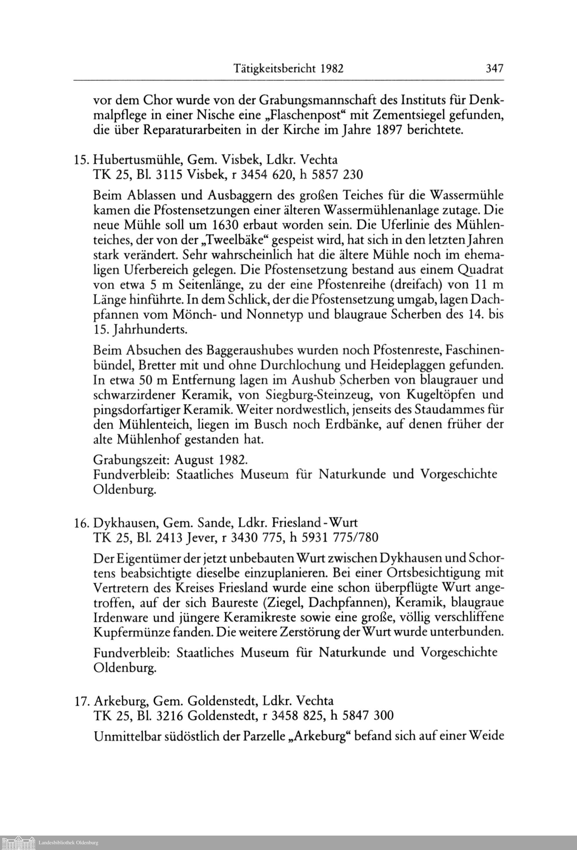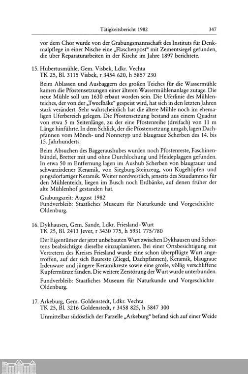 Tätigkeitsbericht 1982. Niedersächsisches Landesverwaltungsamt, Institut für Denkmalpflege...