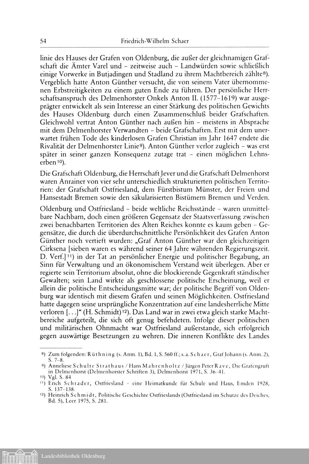 Friedrich-Wilhelm Schaer: Graf Anton Günther in seiner Bedeutung für die Geschichte...
