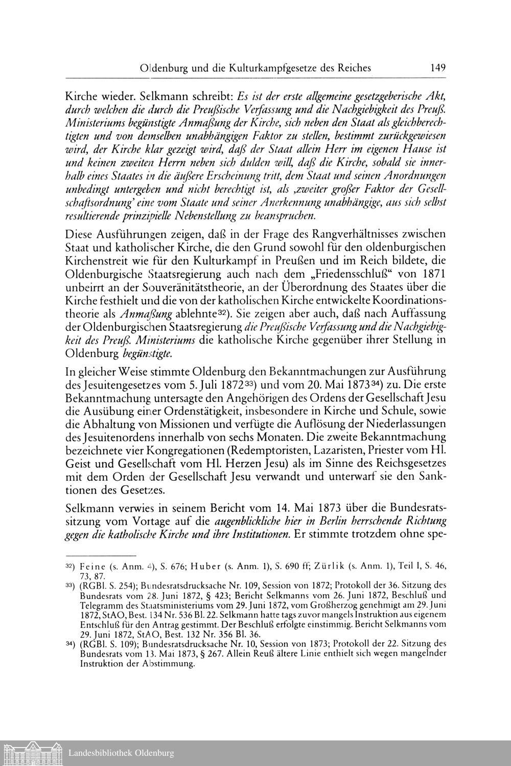 Josef Zürlik: Oldenburg und die Kulturkampfgesetzte des Reiches