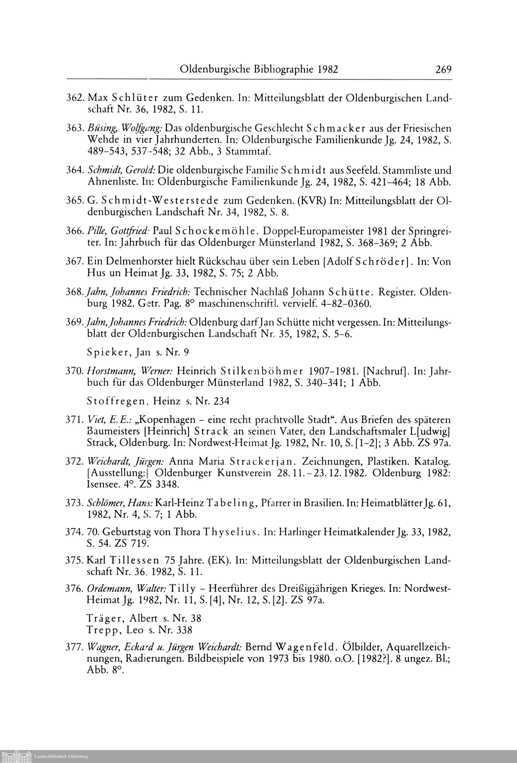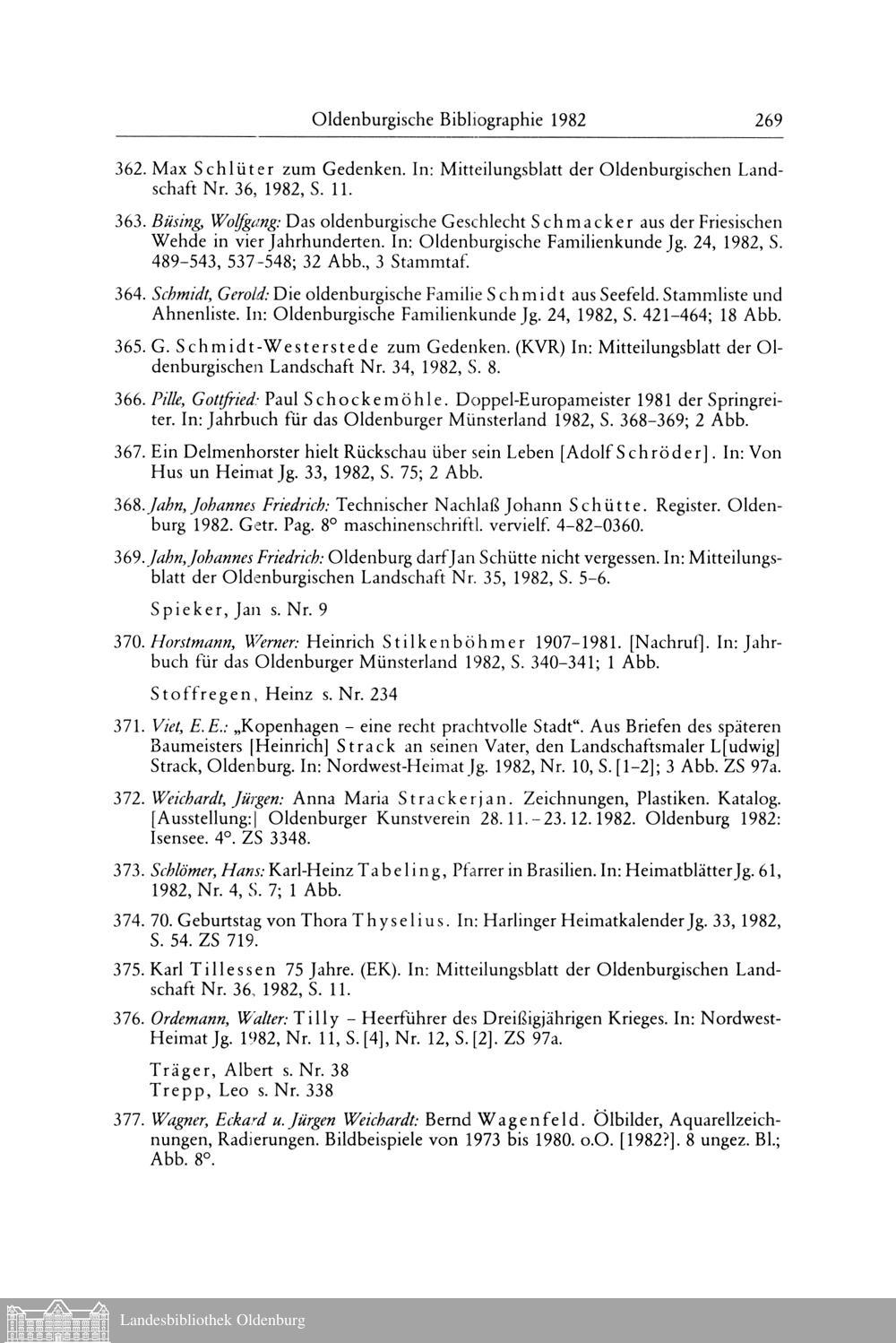 Egbert Koolman und Rainer Lübbe: Oldenburgische Bibliographie 1982 (Mit Nachträgen...