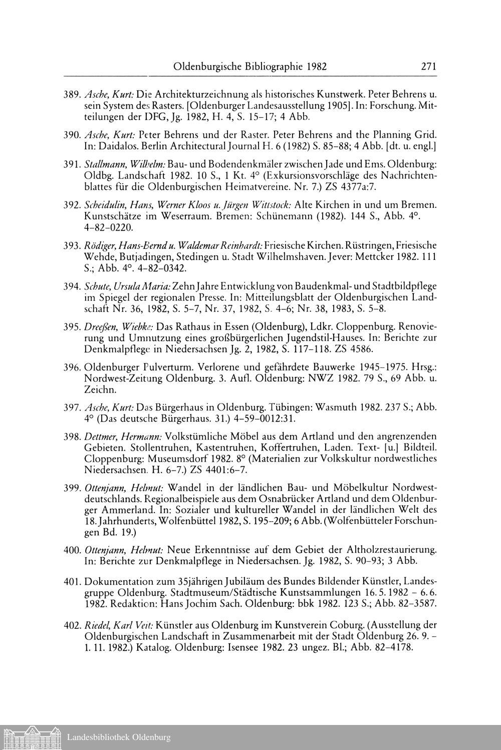 Egbert Koolman und Rainer Lübbe: Oldenburgische Bibliographie 1982 (Mit Nachträgen...
