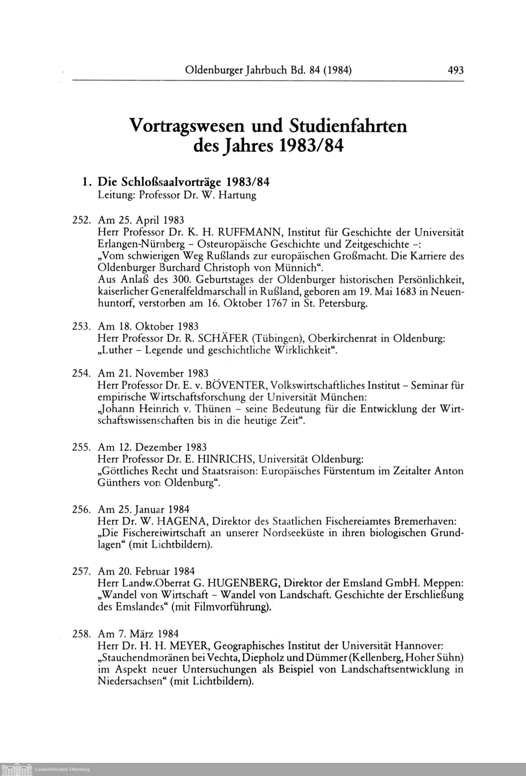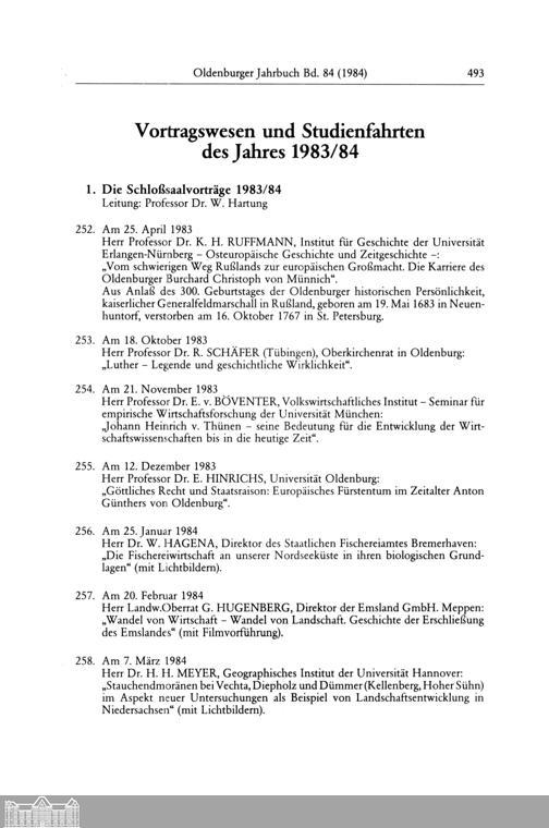 Vortragswesen und Studienfahrten des Jahres 1983/84