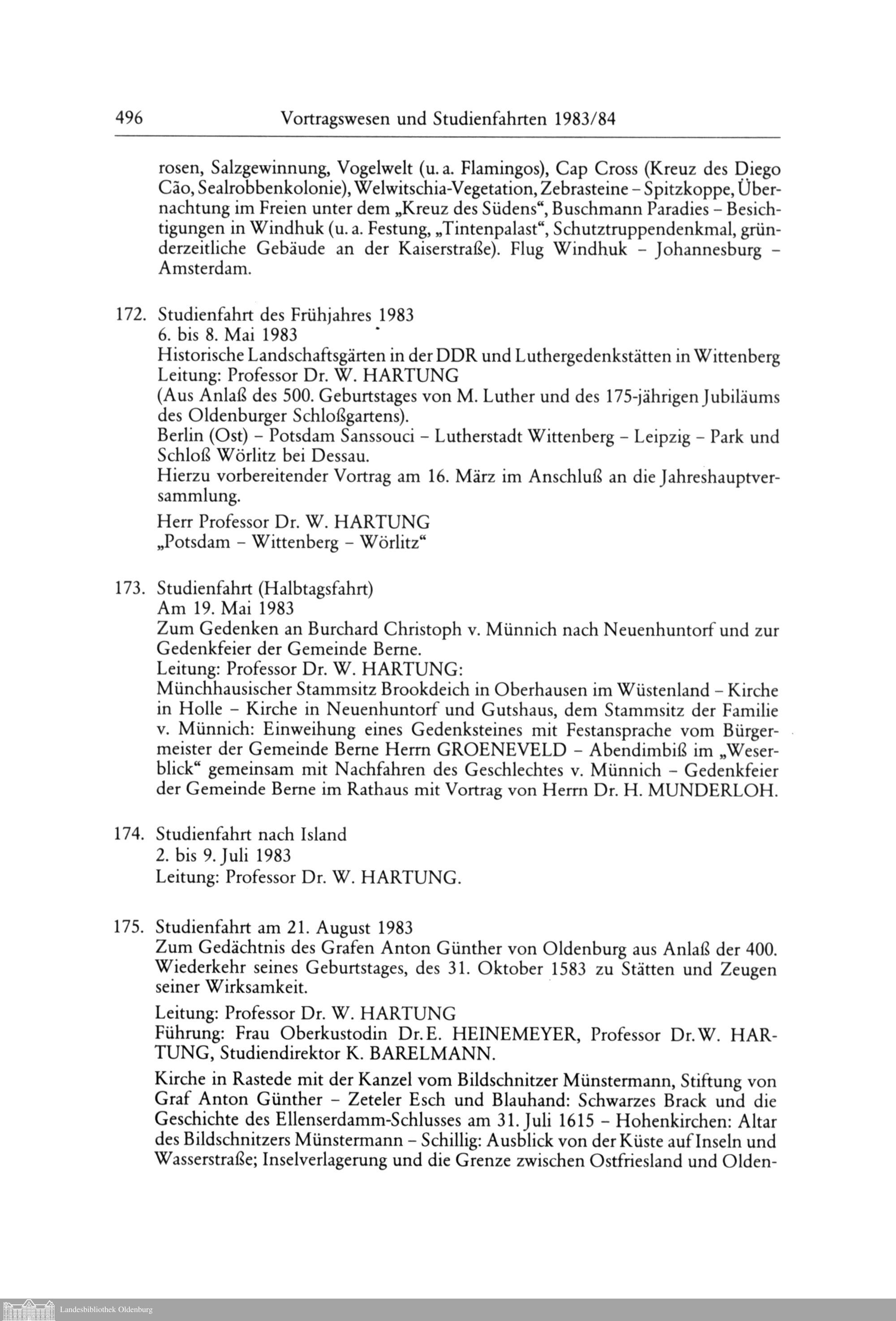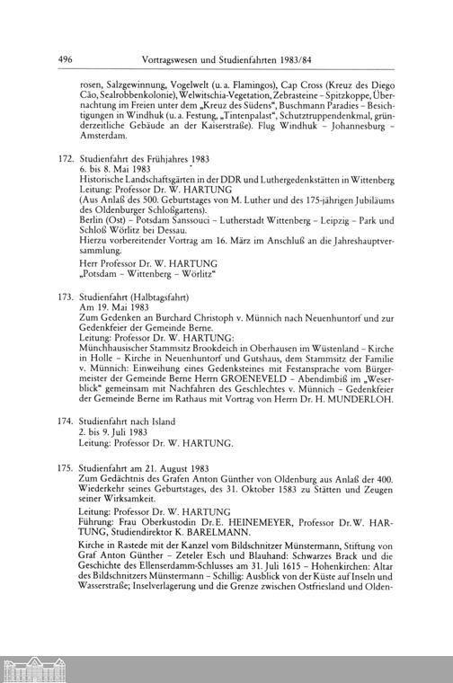 Vortragswesen und Studienfahrten des Jahres 1983/84