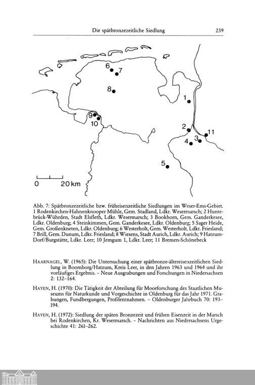 Die spätbronzezeitliche Siedlung Rodenkirchen-Hahnenknooper Mühle, Gemeinde Stadland,...