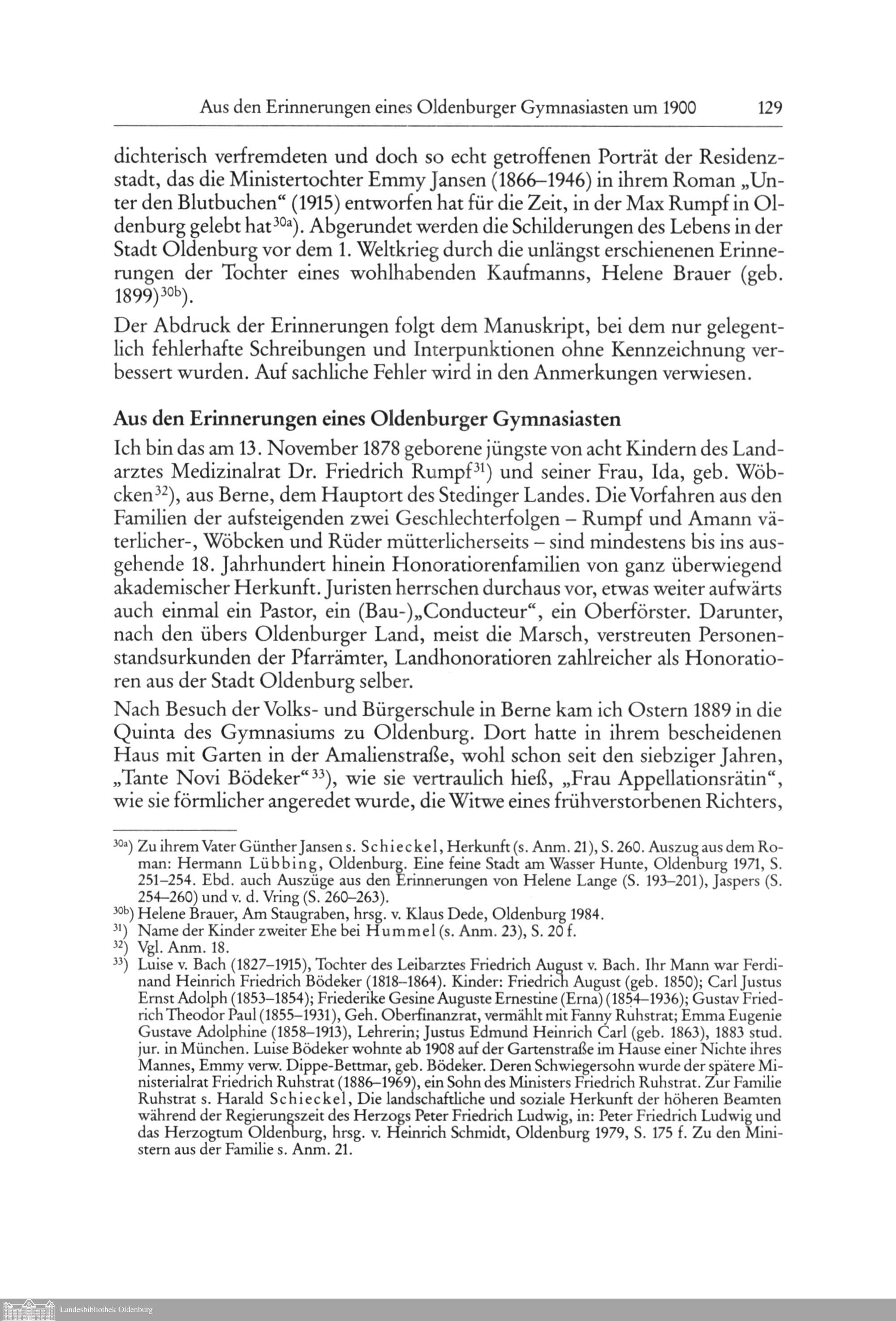 Max Rumpf: Aus den Erinnerungen eines Oldenburger Gymnasiasten um 1900. Bearbeitet...