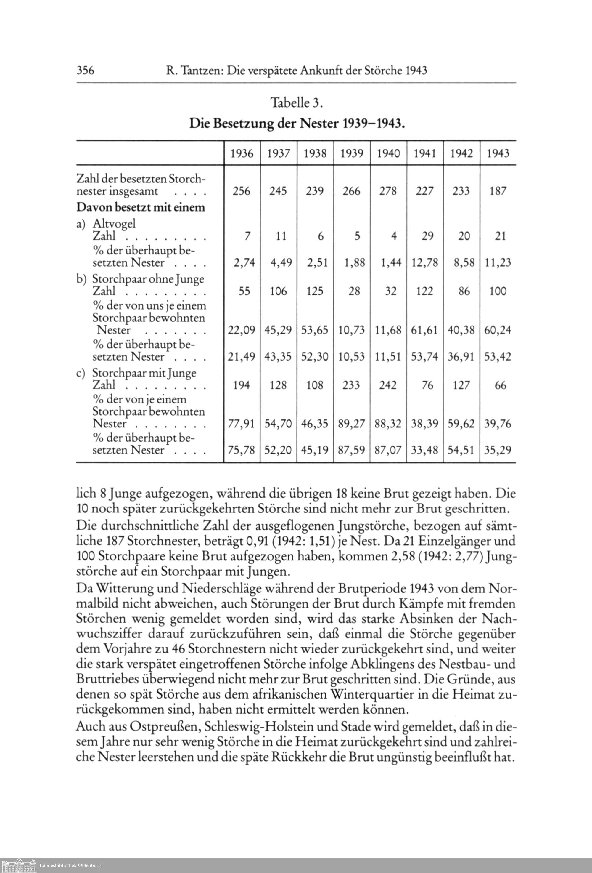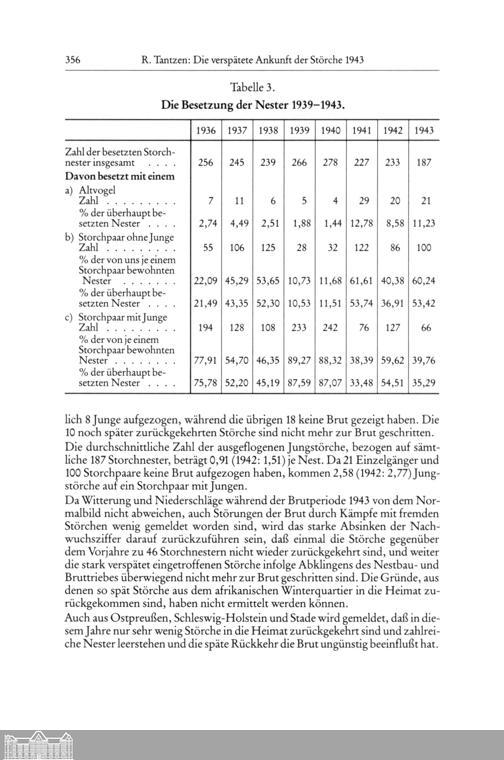 Richard Tantzen †: Die verspätete Ankunft der Störche Ciconia D aconia [L.] 1943...