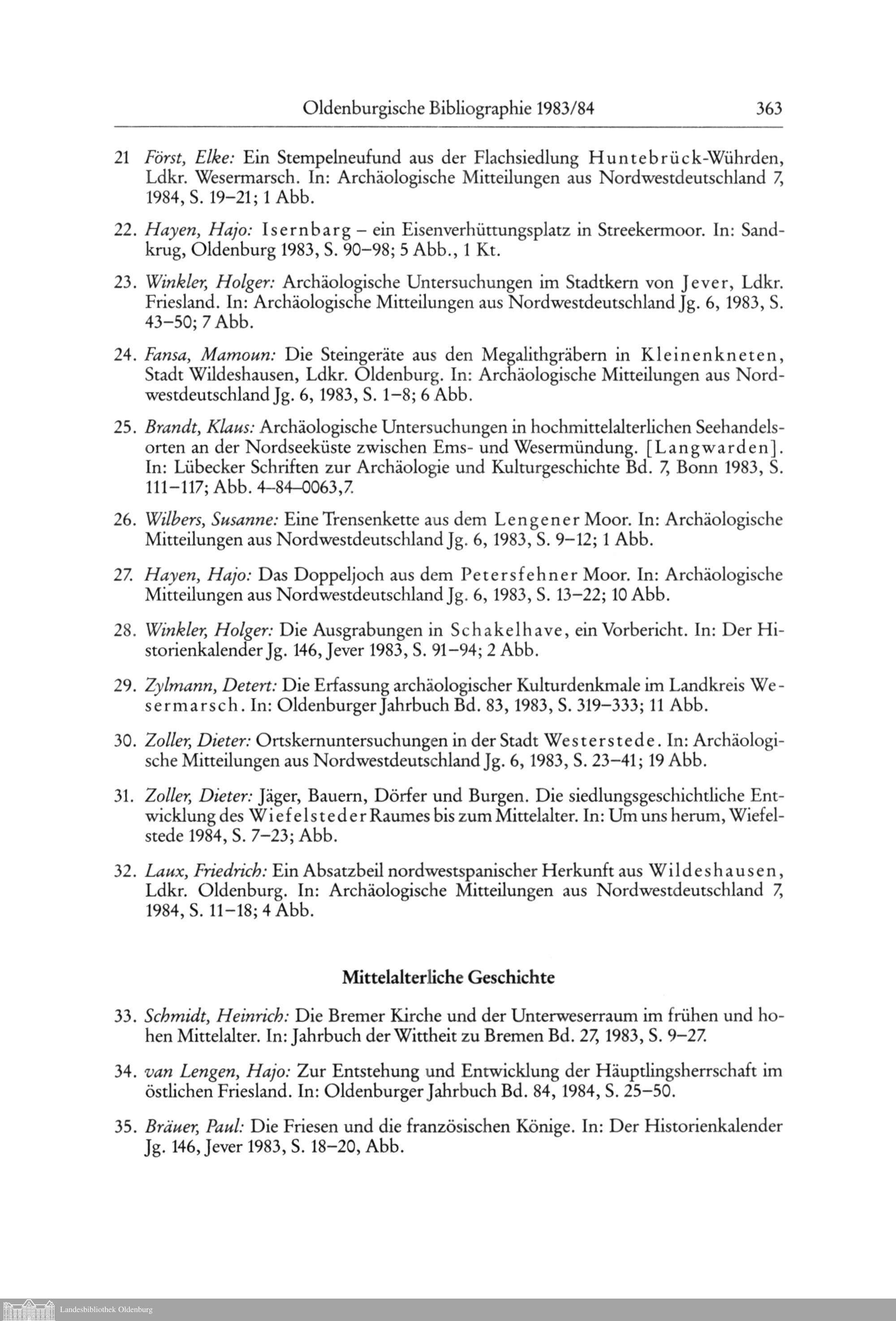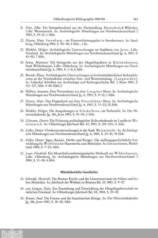 Egbert Koolman und Rainer Lübbe: Oldenburgische Bibliographie 1983/84. (Mit Nachträgen...
