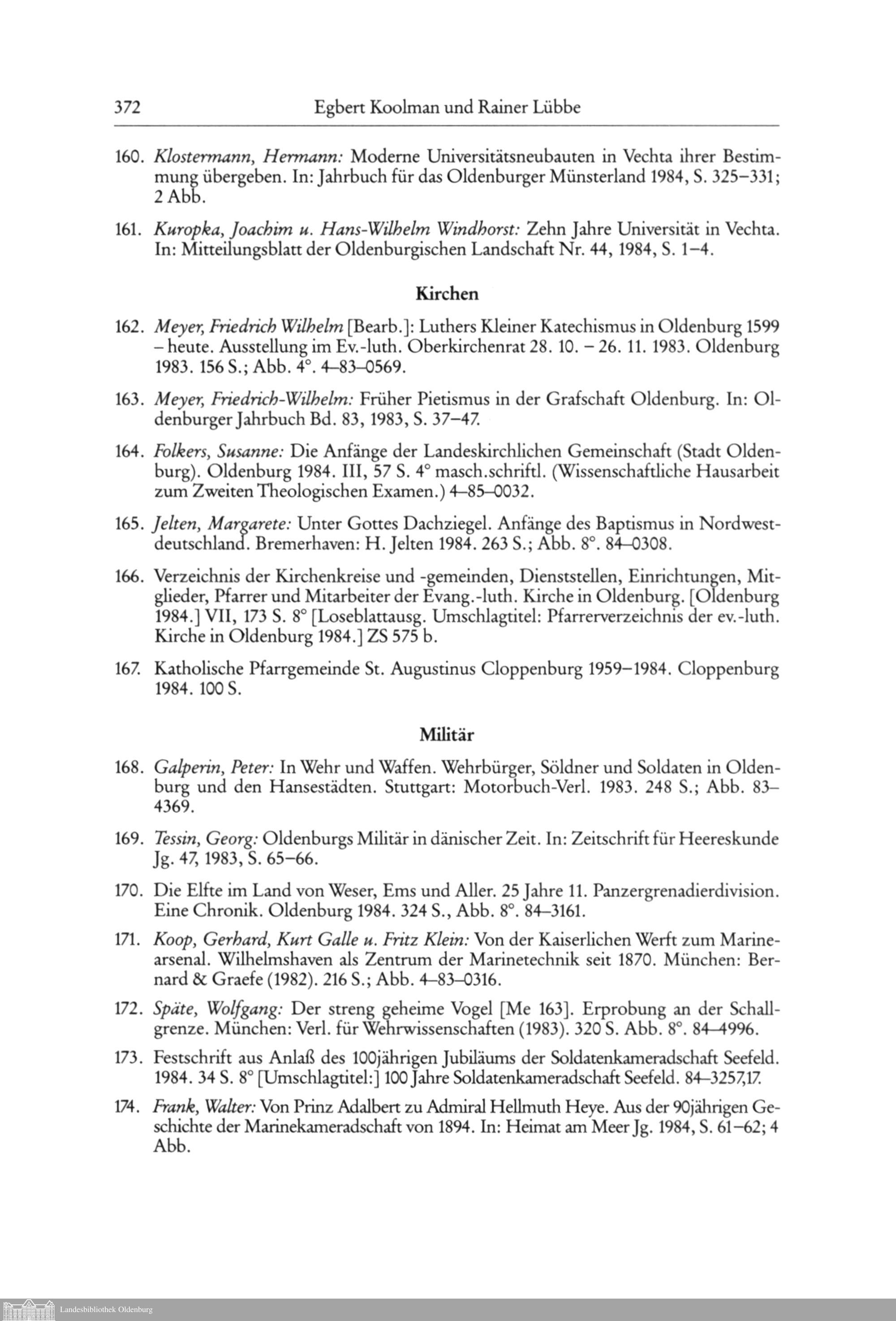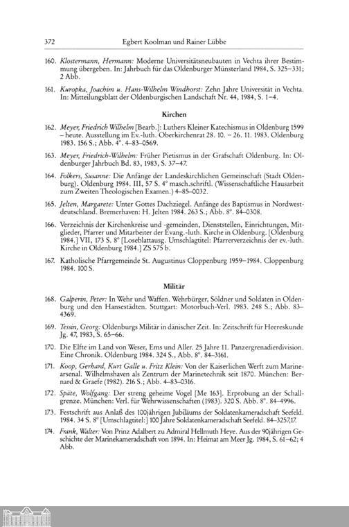 Egbert Koolman und Rainer Lübbe: Oldenburgische Bibliographie 1983/84. (Mit Nachträgen...
